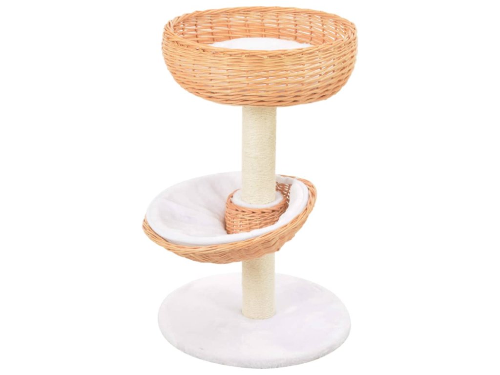 Škrabadlo sa zíde hlavne počas zimných mesiacov, keď vaši malí kamaráti trávia väčšinu času vnútri a nemajú dostatok pohybu, pretože sa budú mať kde ponaťahovať a pohrať. Škrabacie stĺpiky sú pokryté a obalené sisalovým lanom, ktoré je mimoriadne pohodlné a vášmu mačaciemu kamarátovi poskytne praktické miesto na obrúsenie pazúrikov. Súčasťou stromu sú aj 2 útulné vŕbové košíky, aby si mohla mačka zdriemnuť alebo len tak oddychovať. Na strome sa nachádzajú aj odnímateľné podložky, kde si bude môcť mačka pohodlne poležať.
