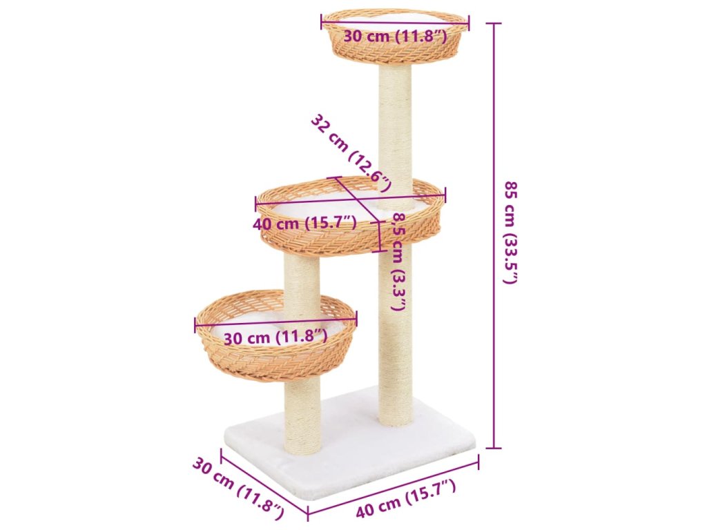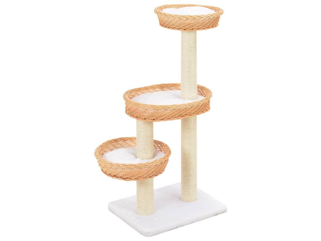 Škrabadlo sa zíde hlavne počas zimných mesiacov, keď vaši malí kamaráti trávia väčšinu času vnútri a nemajú dostatok pohybu, pretože sa budú mať kde ponaťahovať a pohrať. Škrabacie stĺpiky sú pokryté a obalené sisalovým lanom, ktoré je mimoriadne pohodlné a vášmu mačaciemu kamarátovi poskytne praktické miesto na obrúsenie pazúrikov. Súčasťou stromu sú aj 3 útulné vŕbové košíky, aby si mohla mačka zdriemnuť alebo len tak oddychovať. Na strome sa nachádzajú aj odnímateľné podložky, kde si bude môcť mačka pohodlne poležať.