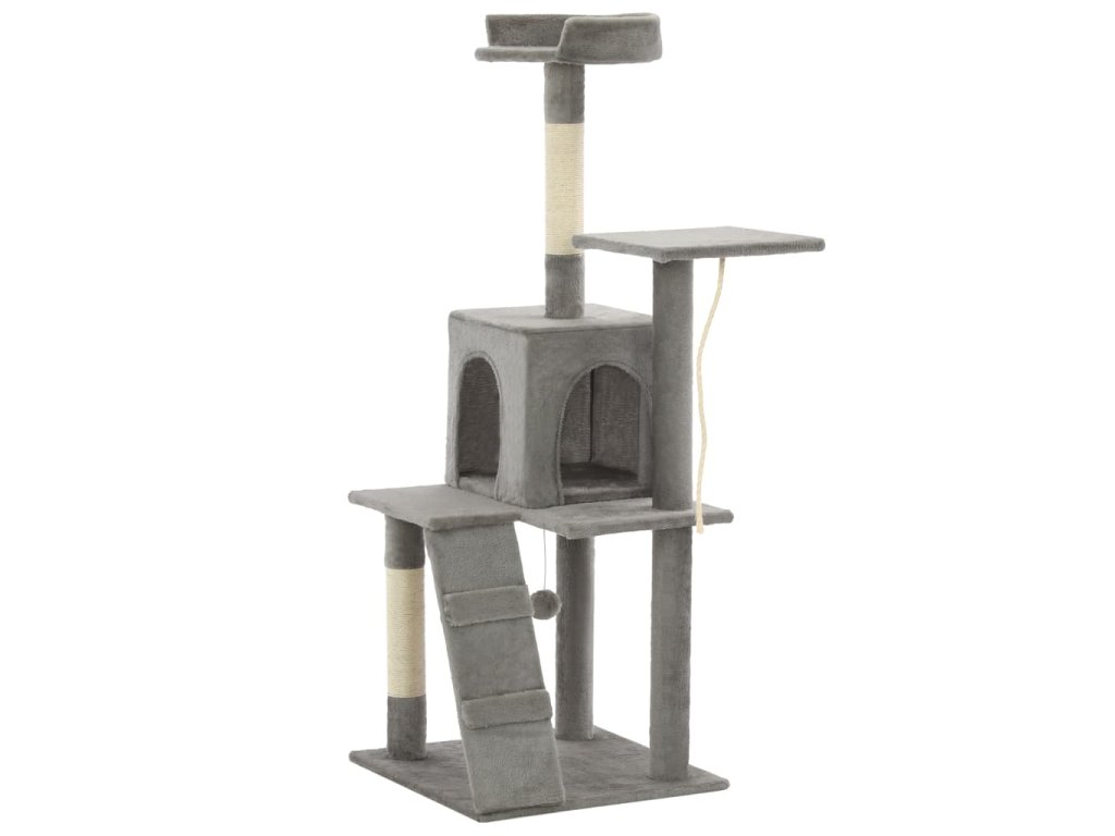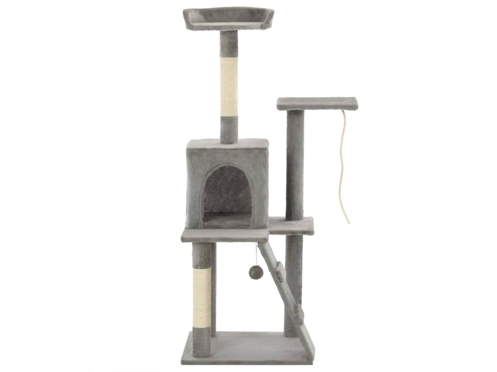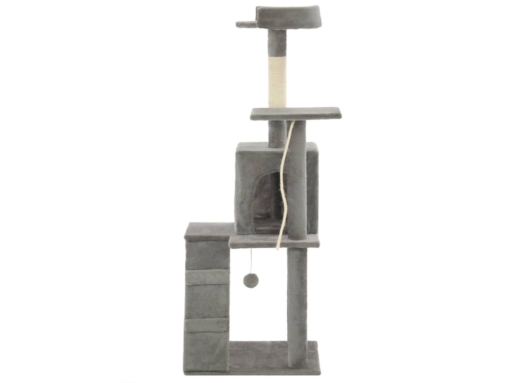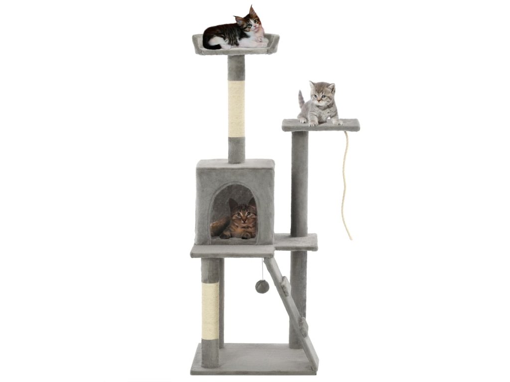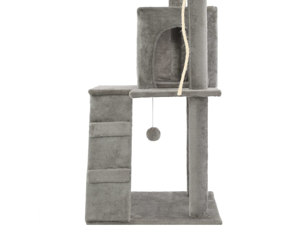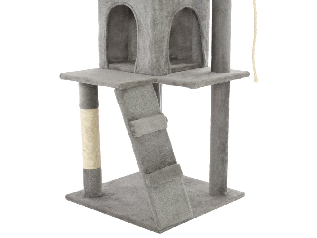 Plyšové škrabacie kobercové stĺpiky sú obalené sisalovým lanom, čo je veľmi praktické a vhodné na brúsenie pazúrikov vášho mačacieho kamaráta. Vaša mačka sa zabaví naháňaním sa a skákaním hore - dole po tejto zábavnej hračke. Náš mačací strom je vybavený útulným domčekom, kde si vaša mačka môže zdriemnuť alebo si nachvíľu oddýchnuť. Taktiež obsahuje rebrík, lano na šplhanie, zavesenú loptičku, vyhliadkové plošiny a priestory na relax, ktoré pomôžu zabaviť vášho malého priateľa. Základňa tohoto škrabadla pre mačky je pevná a stabilná.
