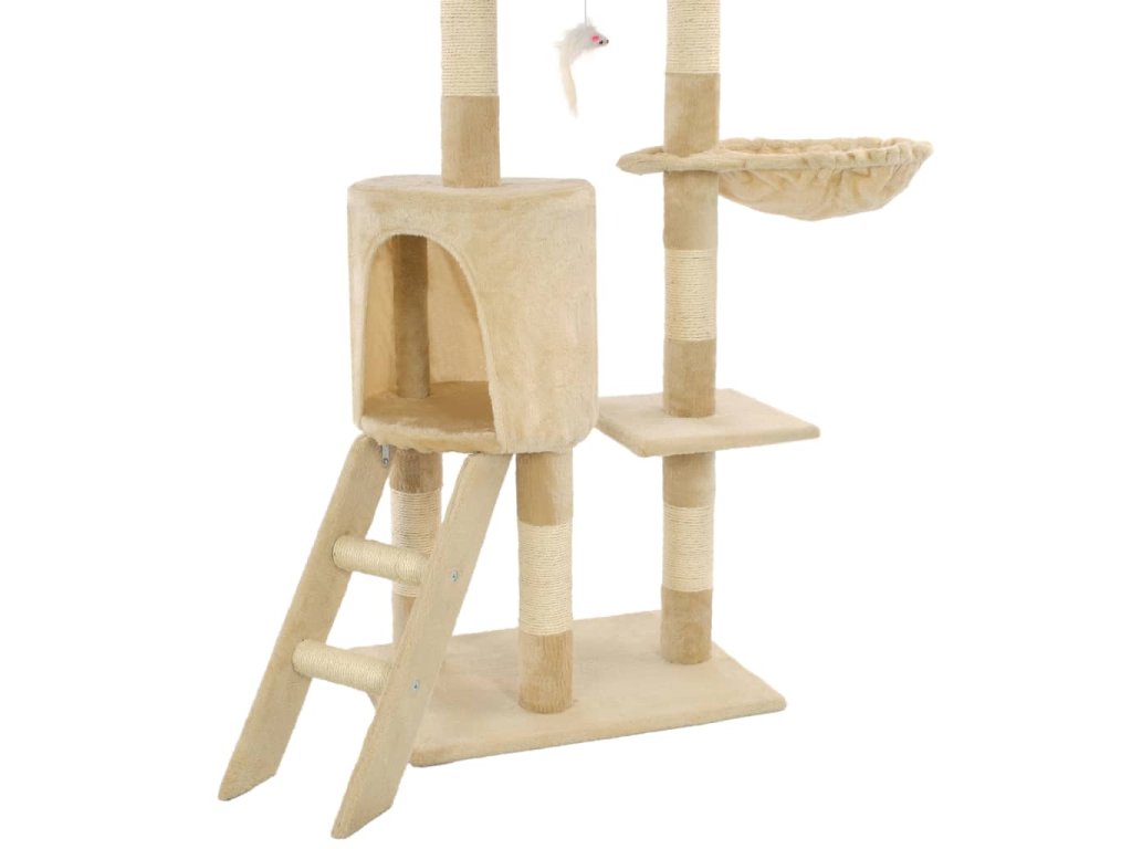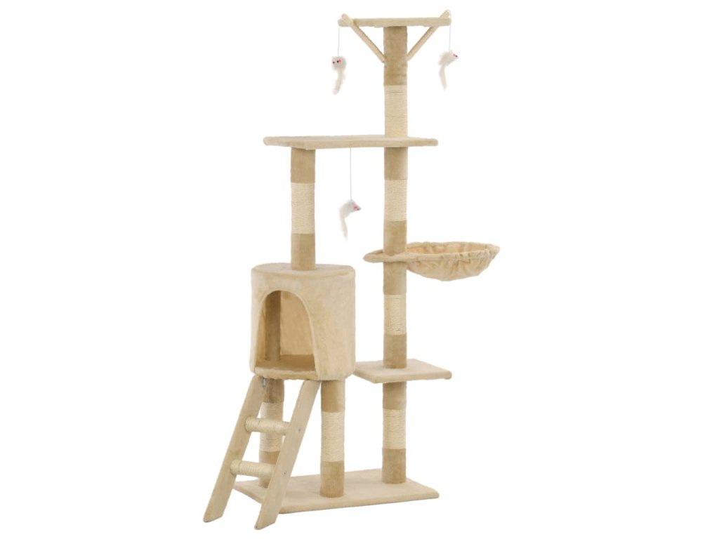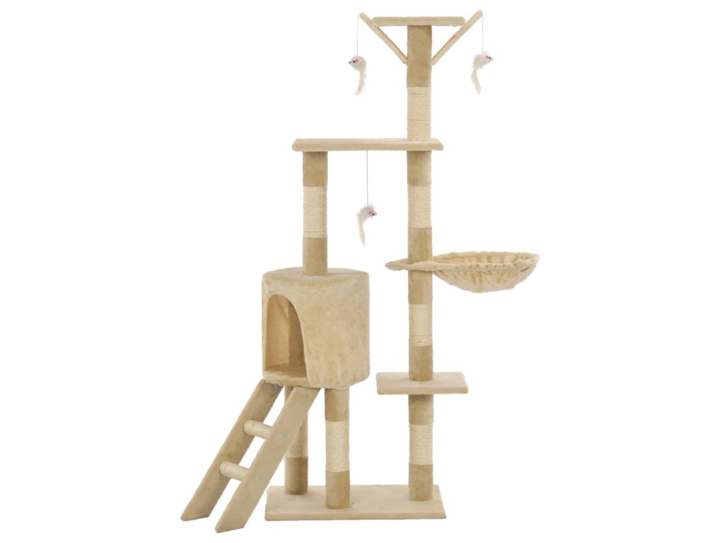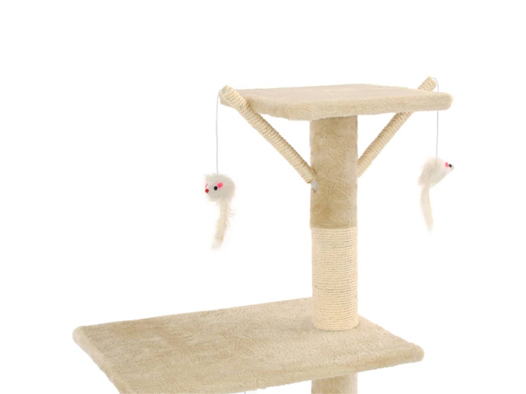 Plyšové škrabacie tyče s kobercami sú obalené sisalovým lanom, čo je veľmi vhodné na brúsenie pazúrikov vášho mačacieho kamaráta. Mačka sa zabaví naháňaním sa a skákaním hore - dole po tejto zábavnej hračke. Mačací strom je vybavený útulným domčekom, aby si mohla mačka zdriemnuť alebo si nachvíľu oddýchnuť. Taktiež obsahuje 3 myši na hranie, vyhliadkové plošiny a priestory na relax, ktoré pomôžu zabaviť vášho malého priateľa. Základňa tohto škrabadla pre mačky je robustná a stabilná.