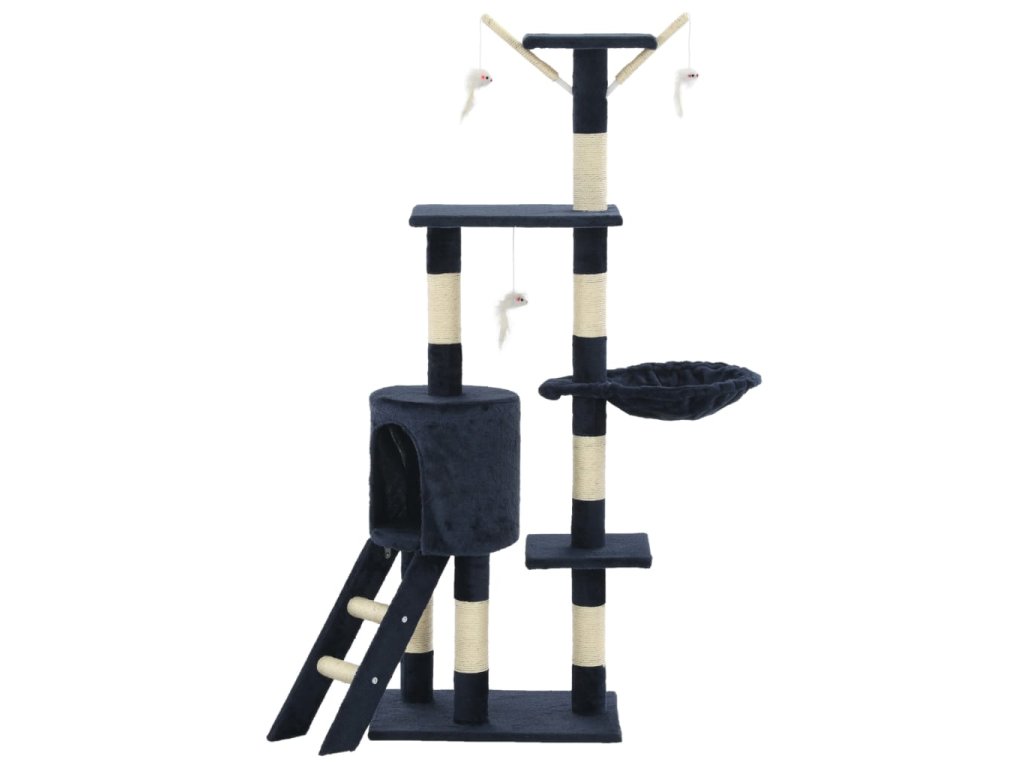 Plyšové škrabacie tyče s kobercami sú obalené sisalovým lanom, čo je veľmi vhodné na brúsenie pazúrikov vášho mačacieho kamaráta. Mačka sa zabaví naháňaním sa a skákaním hore - dole po tejto zábavnej hračke. Mačací strom je vybavený útulným domčekom, aby si mohla mačka zdriemnuť alebo si nachvíľu oddýchnuť. Taktiež obsahuje 3 myši na hranie, vyhliadkové plošiny a priestory na relax, ktoré pomôžu zabaviť vášho malého priateľa. Základňa tohto škrabadla pre mačky je robustná a stabilná.
