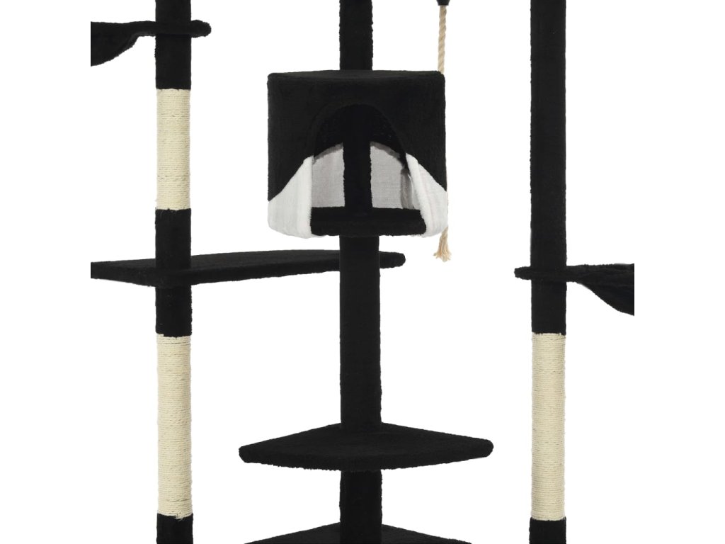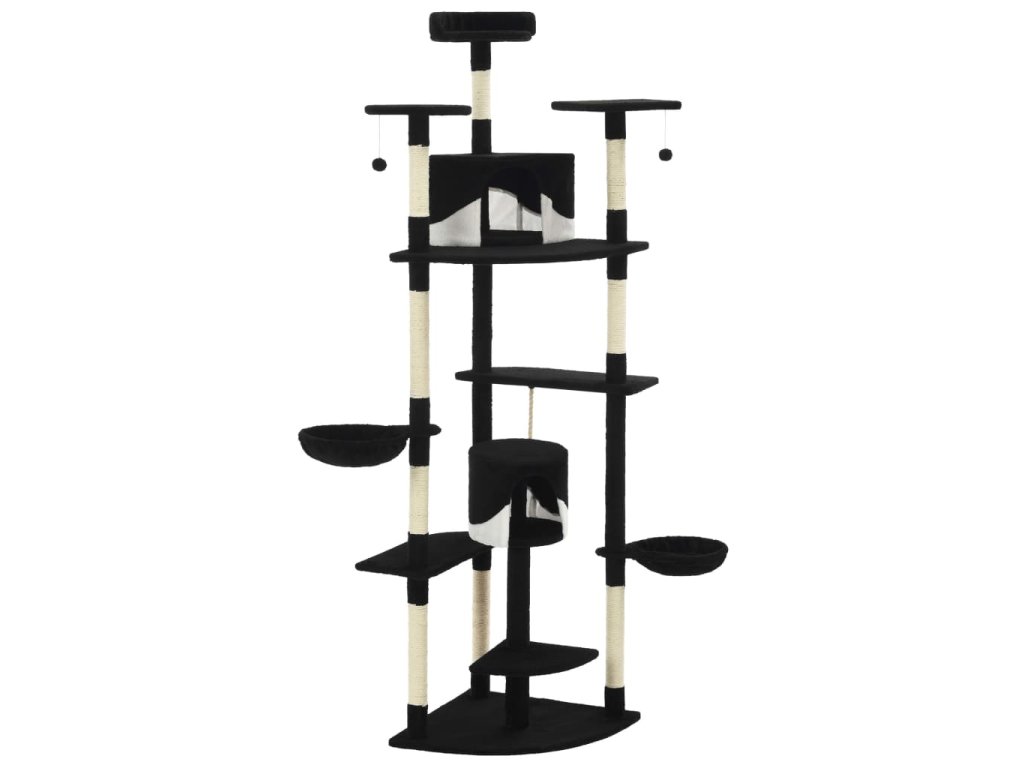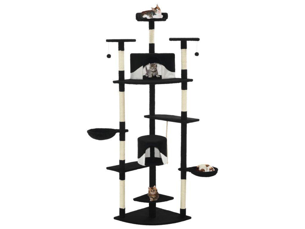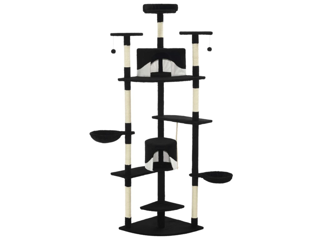 Vaši mačací priatelia si môžu ostriť svoje pazúriky na škrabacích stĺpikoch obalených sisalovým lanom, ktoré poskytuje zdravý spôsob škriabania. Na tejto mačacej veži na hranie si taktiež budú vychutnávať hru na prenasledovanie počas skákania hore a dole. V hornej časti mačacieho stromu sú zavesené dve hračky, ktoré zaujmú vaše zvedavé mačky. Keď sa vaši malí priatelia dohrajú, môžu oddychovať na horných plošinách, odkiaľ majú lepší výhľad. Alebo sa môžu schovať do útulných domčekov a pospať si alebo si odpočinúť v pohodlných košíkoch.