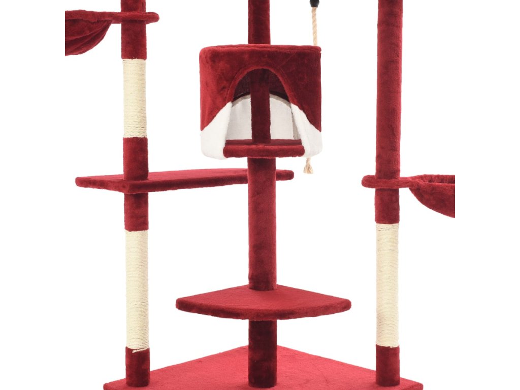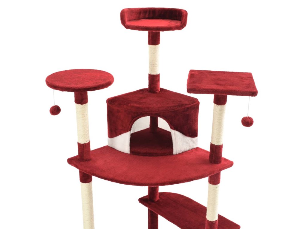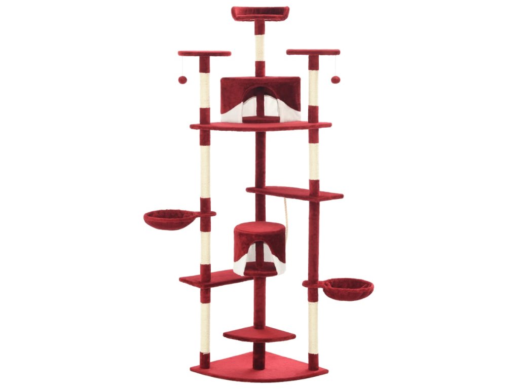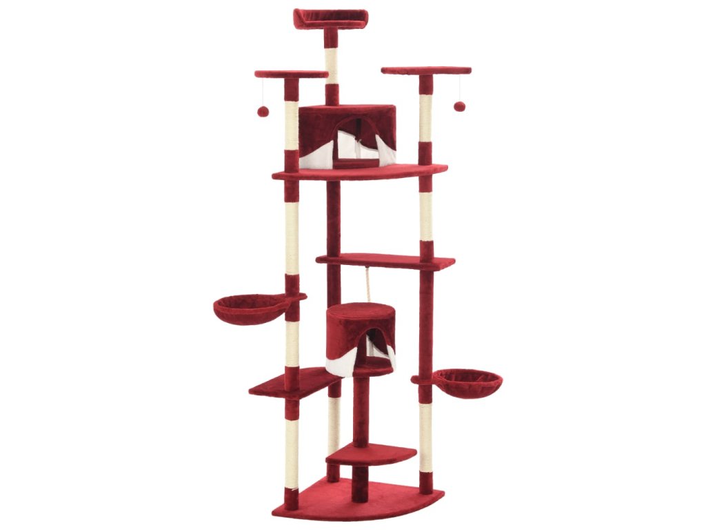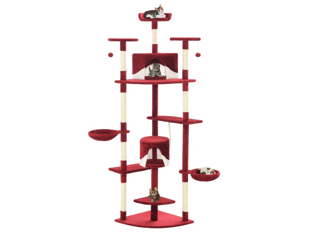 Vaši mačací priatelia si môžu ostriť svoje pazúriky na škrabacích stĺpikoch obalených sisalovým lanom, ktoré poskytuje zdravý spôsob škriabania. Na tejto mačacej veži na hranie si taktiež budú vychutnávať hru na prenasledovanie počas skákania hore a dole. V hornej časti mačacieho stromu sú zavesené dve hračky, ktoré zaujmú vaše zvedavé mačky. Keď sa vaši malí priatelia dohrajú, môžu oddychovať na horných plošinách, odkiaľ majú lepší výhľad. Alebo sa môžu schovať do útulných domčekov a pospať si alebo si odpočinúť v pohodlných košíkoch.