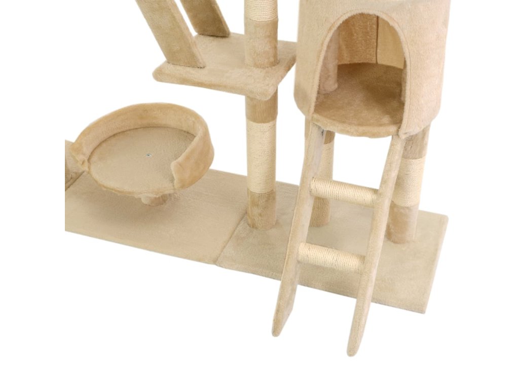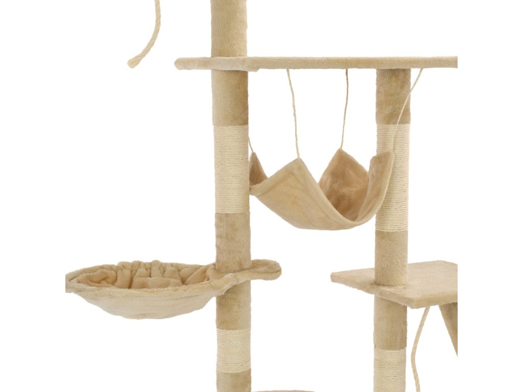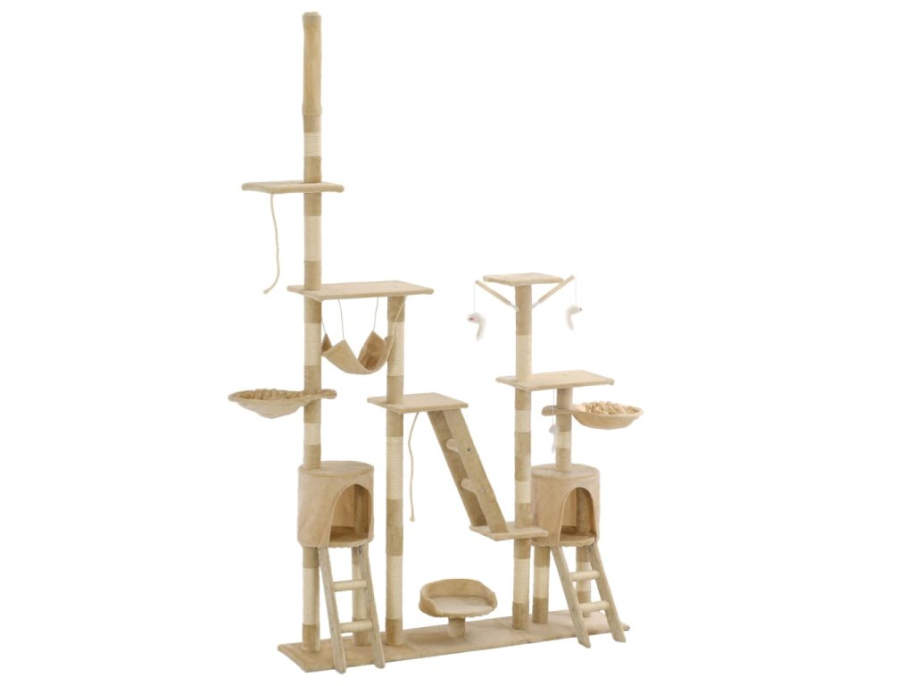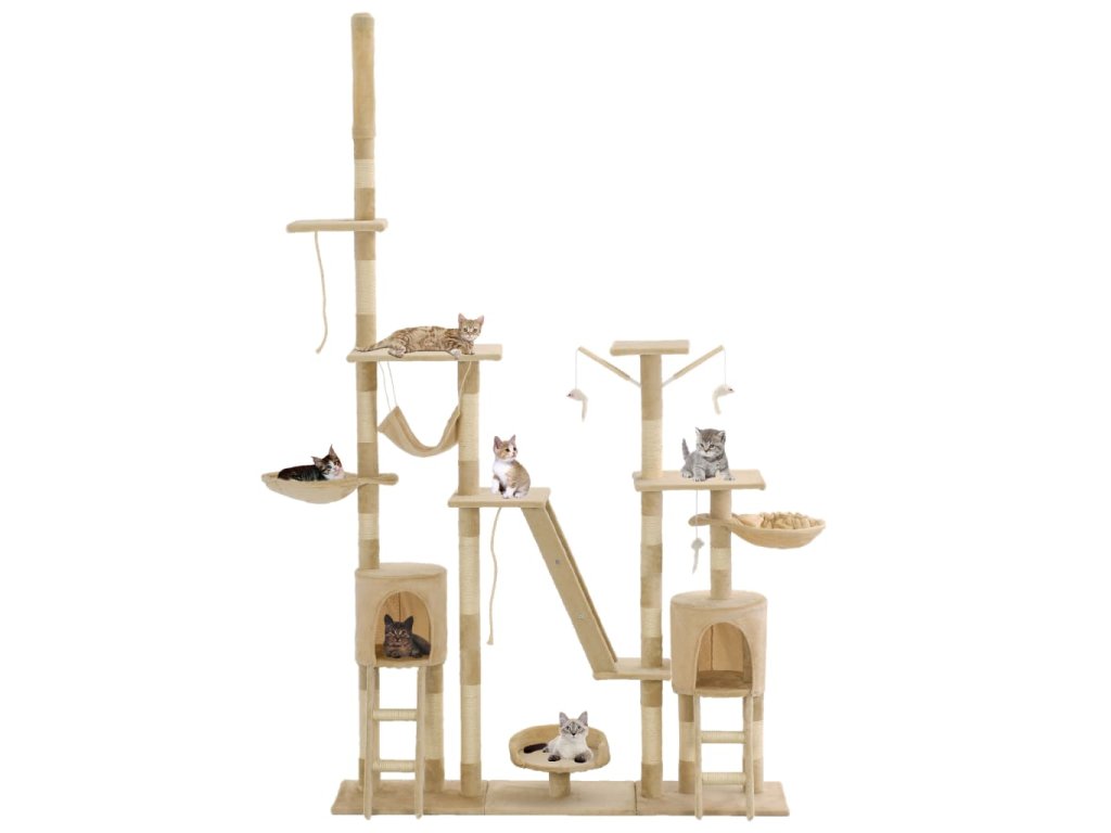 Vaši mačací priatelia si môžu naostriť svoje pazúriky na škrabacích stĺpoch obalených v sisalovom lane, ktoré poskytnú zdravú možnosť pre škrabanie. Tiež si budú užívať vzájomné naháňanie, keď budú skákať hore-dole po tomto zábavnom centre. Keď budú mať vaši malí priatelia dosť zábavy, môžu si vychutnávať oddych na horných plošinách, odkiaľ majú lepší výhľad. Môžu sa tiež schovať v útulných domčekoch, kde si môžu zdriemnuť, alebo si odpočinúť v pohodlných košíkoch alebo húpacej sieti. So všetkými týmito zábavnými funkciami sa toto centrum pre mačky stane obľúbeným miestom vášho chlpatého priateľa! Mačacie škrabadlo sa jednoducho montuje.