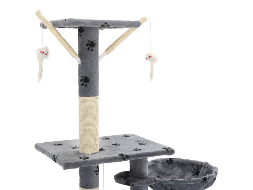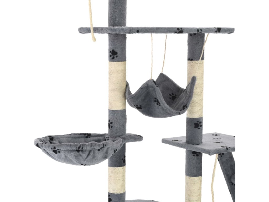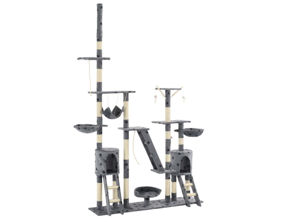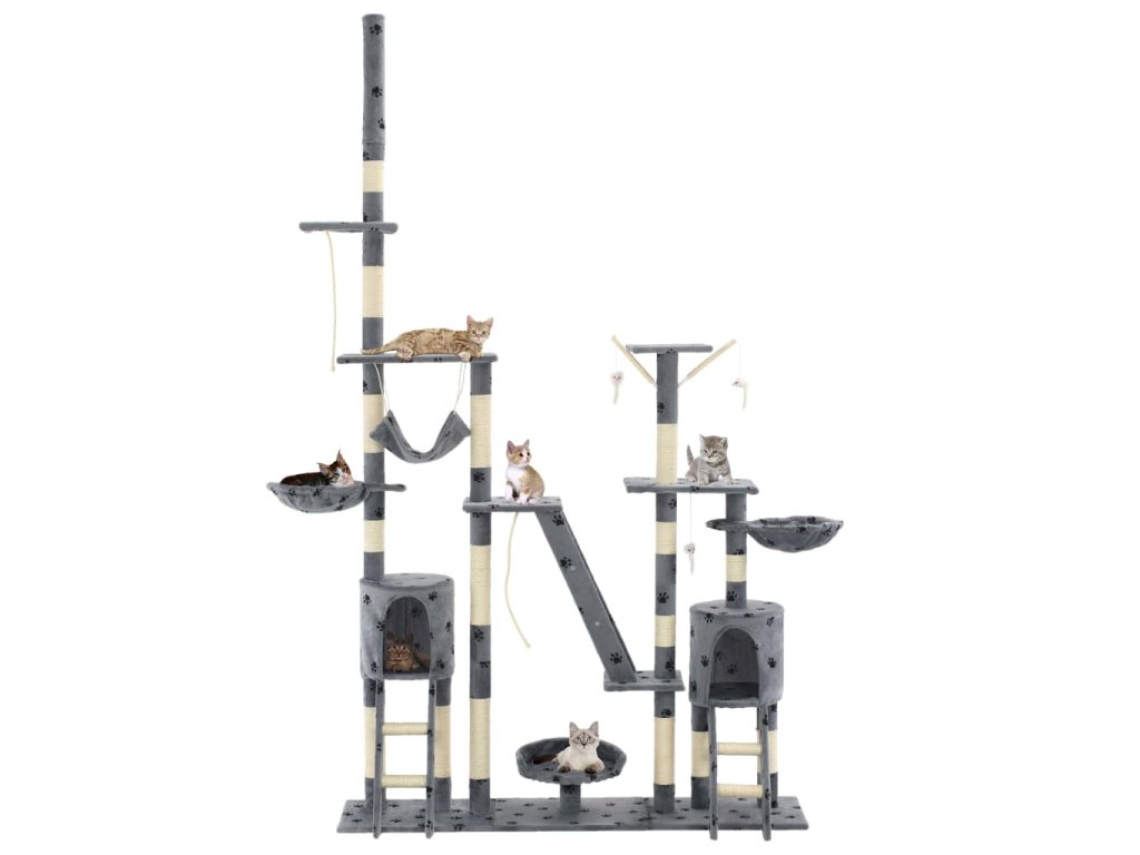 Vaši mačací priatelia si môžu naostriť svoje pazúriky na škrabacích stĺpoch obalených v sisalovom lane, ktoré poskytnú zdravú možnosť pre škrabanie. Tiež si budú užívať vzájomné naháňanie, keď budú skákať hore-dole po tomto zábavnom centre. Keď budú mať vaši malí priatelia dosť zábavy, môžu si vychutnávať oddych na horných plošinách, odkiaľ majú lepší výhľad. Môžu sa tiež schovať v útulných domčekoch, kde si môžu zdriemnuť, alebo si odpočinúť v pohodlných košíkoch alebo húpacej sieti. So všetkými týmito zábavnými funkciami sa toto centrum pre mačky stane obľúbeným miestom vášho chlpatého priateľa! Mačacie škrabadlo sa jednoducho montuje.