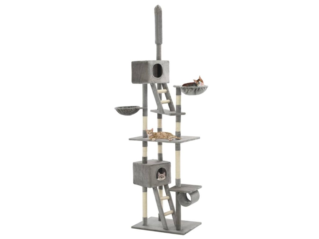 Vaši mačací priatelia si môžu ostriť pazúriky na škrabacích stĺpikoch obalených sisalovým lanom, ktoré im poskytnú zdravý spôsob ako si tento svoj inštinkt trénovať. Budú sa veselo naháňať a skákať hore dole po strome. Keď sa vašim malým kamarátom prestane chcieť hrať, zaiste si radi oddýchnu na plošinách v hornej časti, odkiaľ majú lepší výhľad. Alebo sa môžu schovať do útulného domčeka alebo tunela a pospať si, či odpočívať v pohodlných košíkoch.