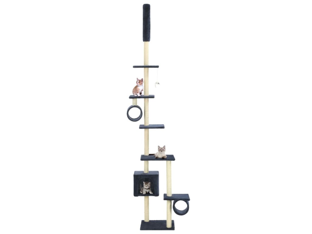 Vaši mačací priatelia si môžu ostriť pazúriky na škrabacích stĺpikoch obalených sisalovým lanom, ktoré im poskytnú zdravý spôsob ako si tento svoj inštinkt trénovať. Budú sa veselo naháňať a skákať hore dole po strome. Na strome je zavesená hračka, ktorá mačky určite zaujme. Keď sa vašim malým kamarátom prestane chcieť hrať, zaiste si radi oddýchnu na plošinách v hornej časti, odkiaľ majú lepší výhľad. Alebo sa môžu schovať do útulného domčeka alebo tunelov a pospať si.