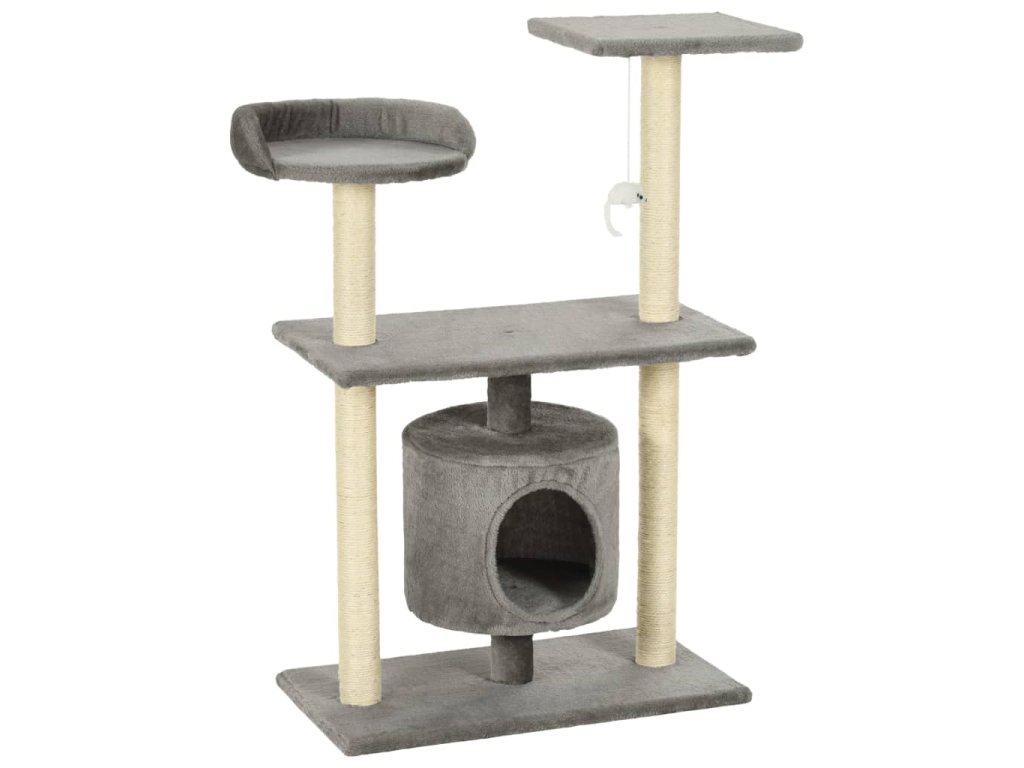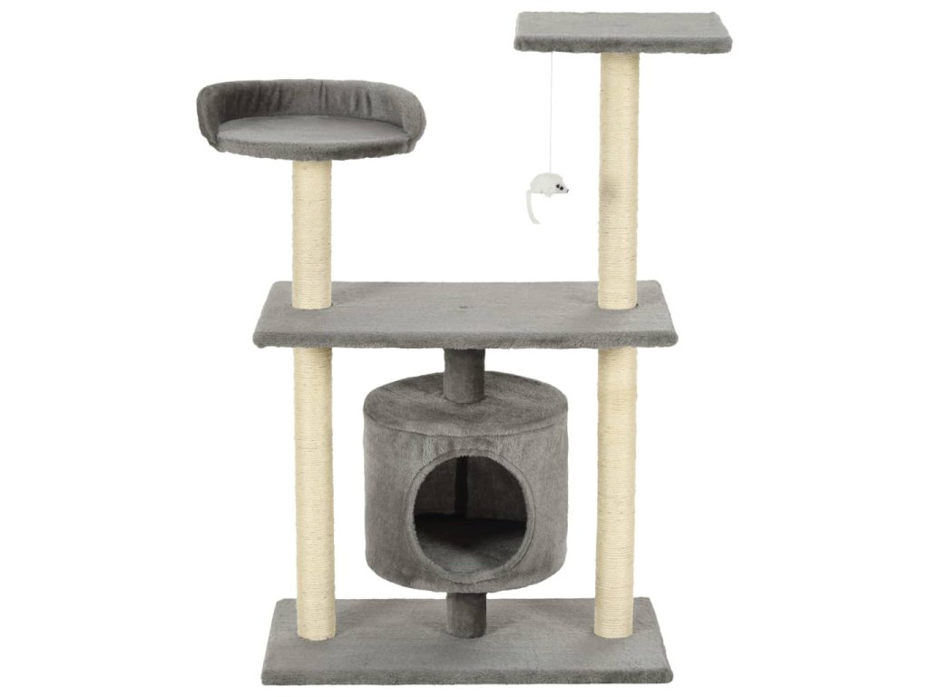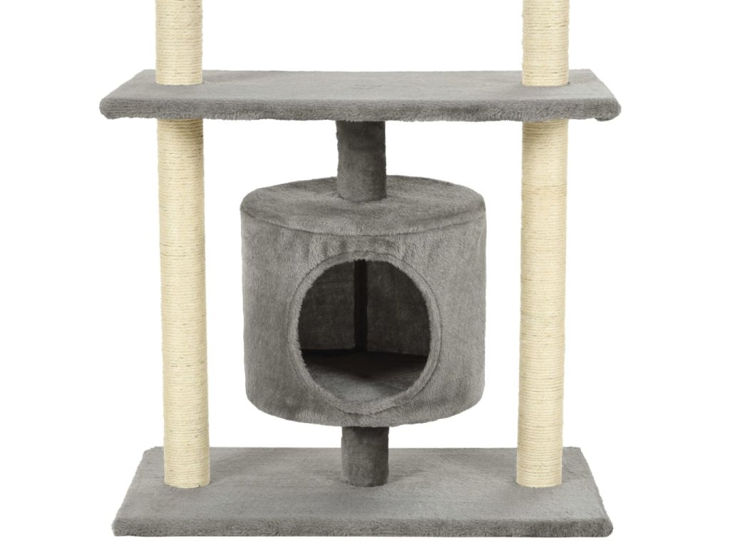 Vaši mačací priatelia si môžu ostriť pazúriky na škrabacích stĺpikoch obalených sisalovým lanom, ktoré im poskytnú zdravý spôsob ako si tento svoj inštinkt trénovať. Budú sa veselo naháňať a skákať hore dole po strome. V hornej časti mačacieho stromu je zavesená hračka, ktorá mačky určite zaujme. Keď sa vašim malým kamarátom prestane chcieť hrať, zaiste si radi oddýchnu na plošinách v hornej časti, odkiaľ majú lepší výhľad. Alebo sa môžu schovať do útulného domčeka a pospať si.