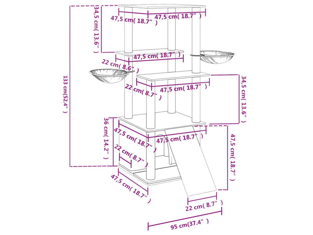 - Komplexná veža pre mačky: Viacúrovňový nábytok pre mačky je navrhnutý s 2 košmi, domčekom, rebríkom a plošinami, ktoré vašim mačkám poskytujú dokonalé miesto, kde môžu liezť, sedieť, škrabať sa, schovávať sa a tiež relaxovať.