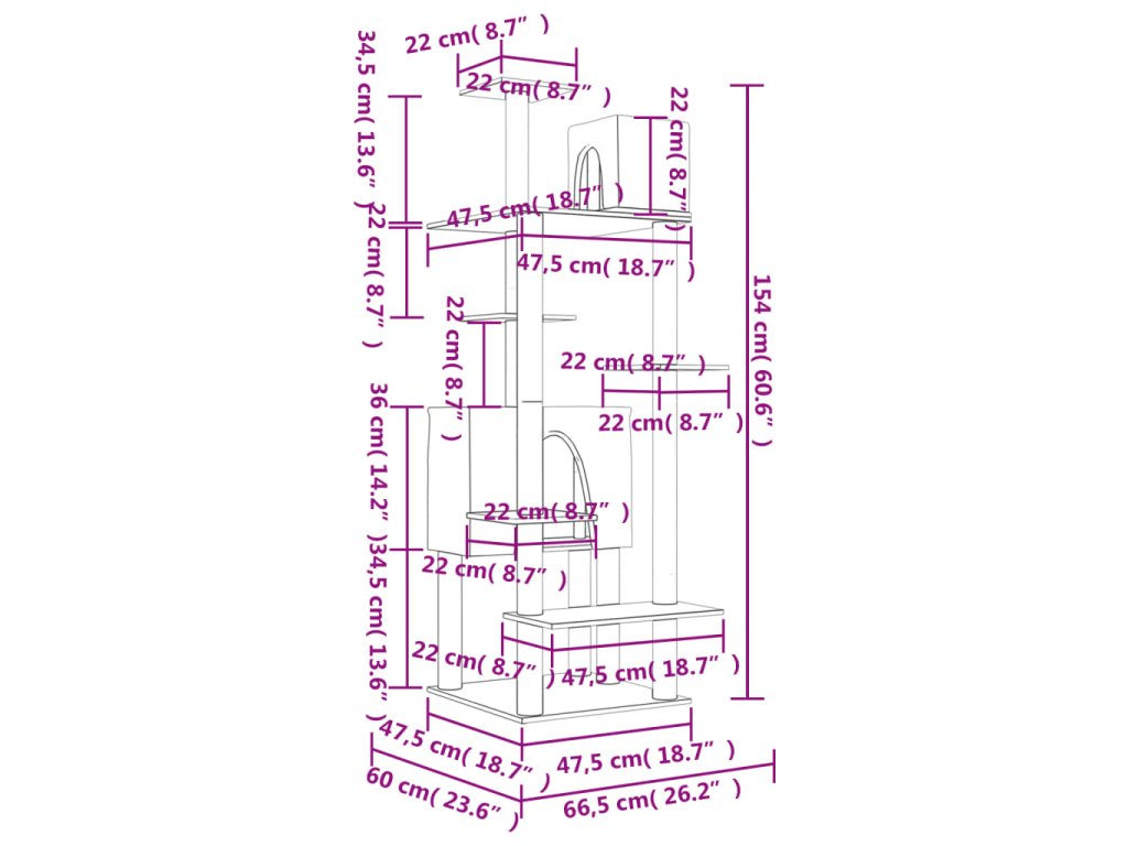 - Komplexná veža pre mačky: Viacúrovňový nábytok pre mačky je navrhnutý s 2 domčekmi a plošinami, ktoré vašim mačkám poskytujú dokonalé miesto, kde môžu liezť, sedieť, škrabať sa, schovávať sa a tiež relaxovať.