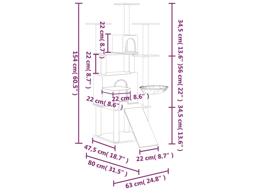- Komplexná veža pre mačky: Viacúrovňový nábytok pre mačky je navrhnutý s 2 domčekmi, 1 ležadlom, 1 rebríkom a plošinami, ktoré vašim mačkám poskytujú dokonalé miesto, kde môžu liezť, sedieť, škrabať sa, schovávať sa a tiež relaxovať.