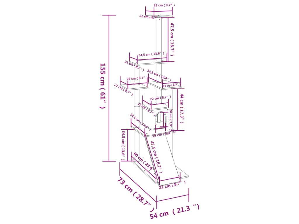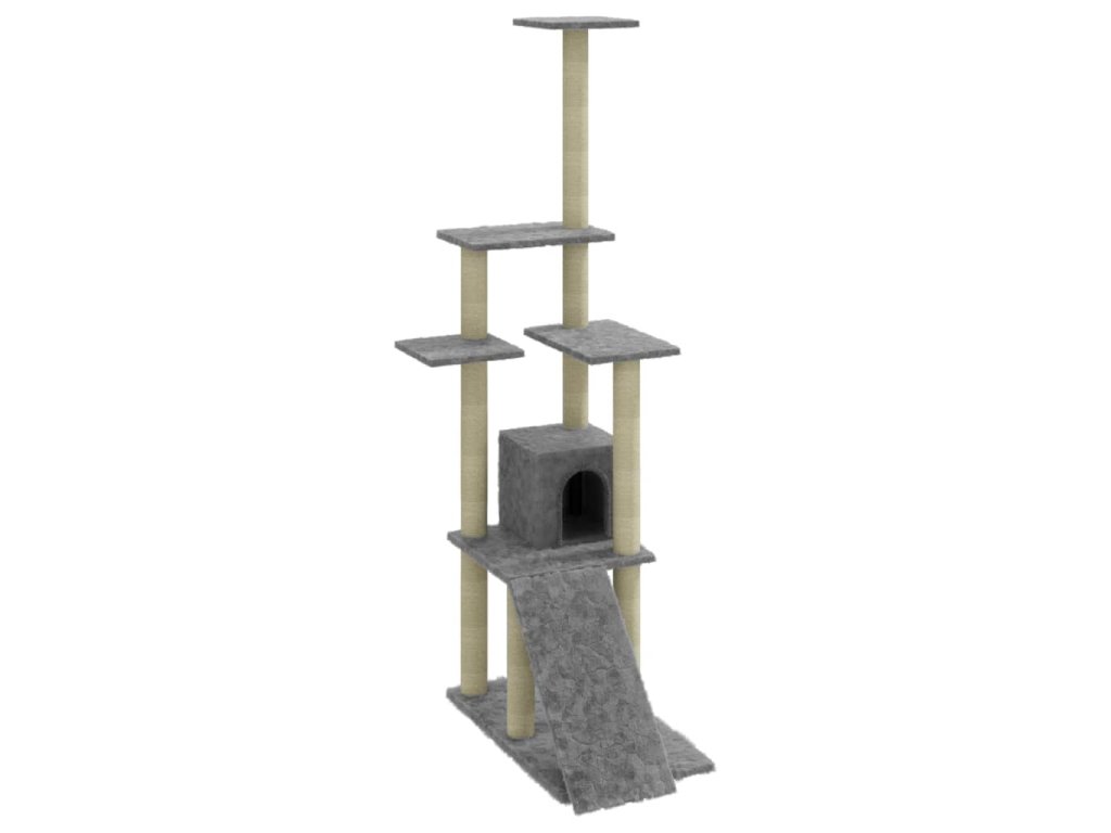 Vaši chlpatí priatelia si môžu ostriť pazúriky na škrabacích stĺpikoch obalených sisalovým lanom, ktoré im poskytnú zdravý spôsob ako si tento svoj inštinkt trénovať. Budú sa veselo naháňať a skákať hore dole po strome. Keď sa vašim malým kamarátom prestane chcieť hrať, zaiste si radi oddýchnu na plošinách v hornej časti, odkiaľ majú lepší výhľad. Alebo sa môžu schovať do útulného domčeka a pospať si či len tak odpočívať na pohodlnom plyšovom sedadle. V spodnej časti sa nachádza rampa, po ktorej môžu liezť.