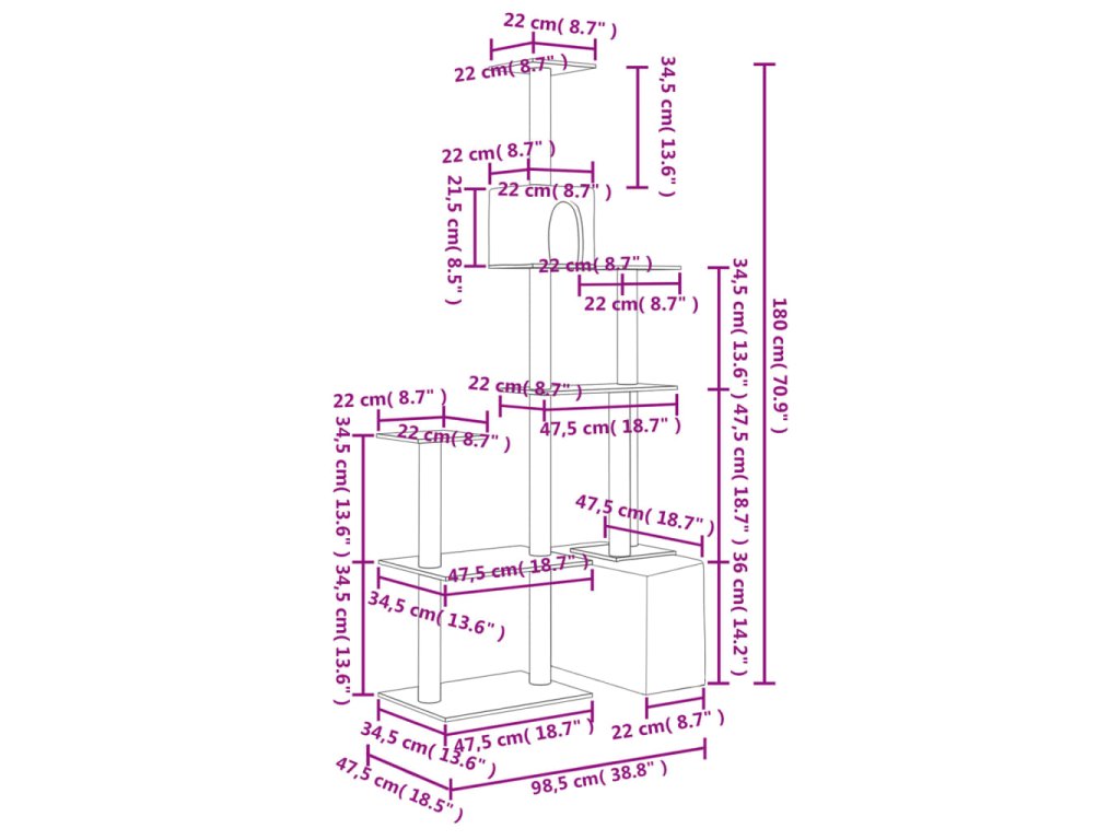 - Komplexná veža pre mačky: Viacúrovňový nábytok pre mačky je navrhnutý s 2 domčekmi a plošinami, ktoré vašim mačkám poskytujú dokonalé miesto, kde môžu liezť, sedieť, škrabať sa, schovávať sa a tiež relaxovať.