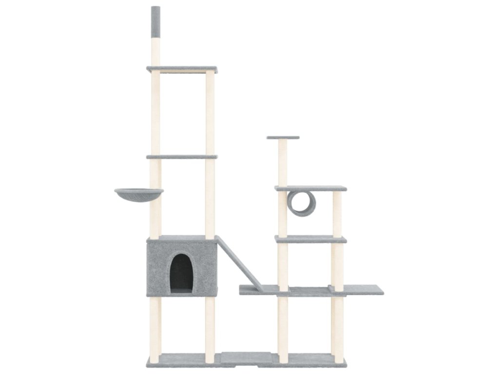 - Komplexná veža pre mačky: Viacúrovňový nábytok pre mačky obsahuje 1 tunel, 1 hojdaciu sieť, 1 domček, 1 rebrík a plošiny, ktoré vašim mačkám poskytujú dokonalé miesto, kde môžu liezť, sedieť, škrabať, schovať sa či relaxovať.