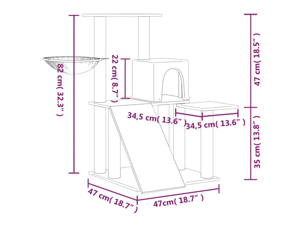 - Komplexná veža pre mačky: Viacúrovňový nábytok pre mačky je navrhnutý s 1 domčekom, 1 ležadlom, 1 rebríkom a plošinami, ktoré vašim mačkám poskytujú dokonalé miesto, kde môžu liezť, sedieť, škrabať sa, schovávať sa a tiež relaxovať.