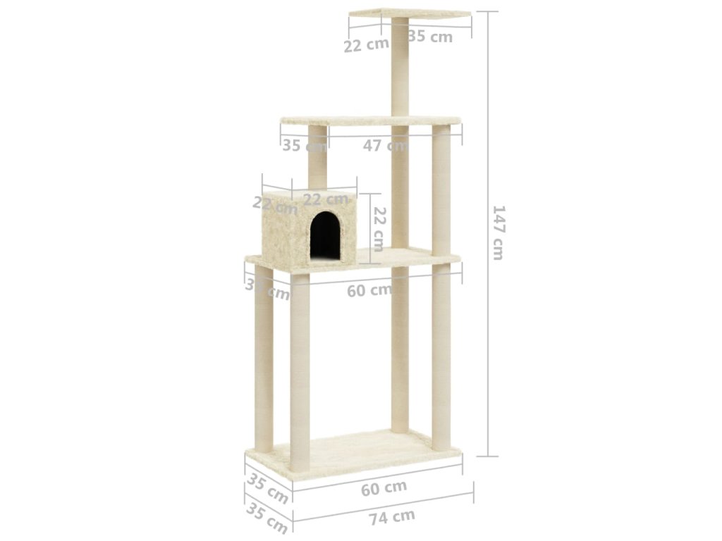 Vaši chlpatí priatelia si môžu ostriť pazúriky na škrabacích stĺpikoch obalených sisalovým lanom, ktoré im poskytnú zdravý spôsob ako si tento svoj inštinkt trénovať. Budú sa veselo naháňať a skákať hore dole po strome. Keď sa vašim malým kamarátom prestane chcieť hrať, zaiste si radi oddýchnu na plošinách v hornej časti, odkiaľ majú lepší výhľad. Alebo sa môžu schovať do útulného domčeka a pospať si či len tak odpočívať na pohodlnom plyšovom sedadle.