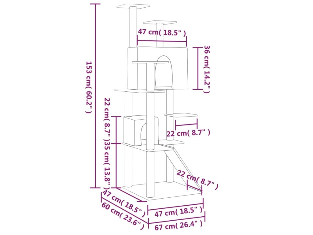 - Komplexná veža pre mačky: Viacúrovňový nábytok pre mačky je navrhnutý s 2 domčekmi, rebríkom a plošinami, ktoré vašim mačkám poskytujú dokonalé miesto, kde môžu liezť, sedieť, škrabať sa, schovávať sa a tiež relaxovať.