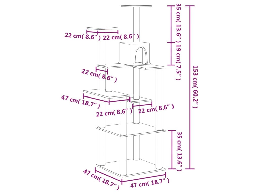 - Komplexná veža pre mačky: Viacúrovňový nábytok pre mačky je navrhnutý s domčekom a plošinami, ktoré vašim mačkám poskytujú dokonalé miesto, kde môžu liezť, sedieť, škrabať sa, schovávať sa a tiež relaxovať.