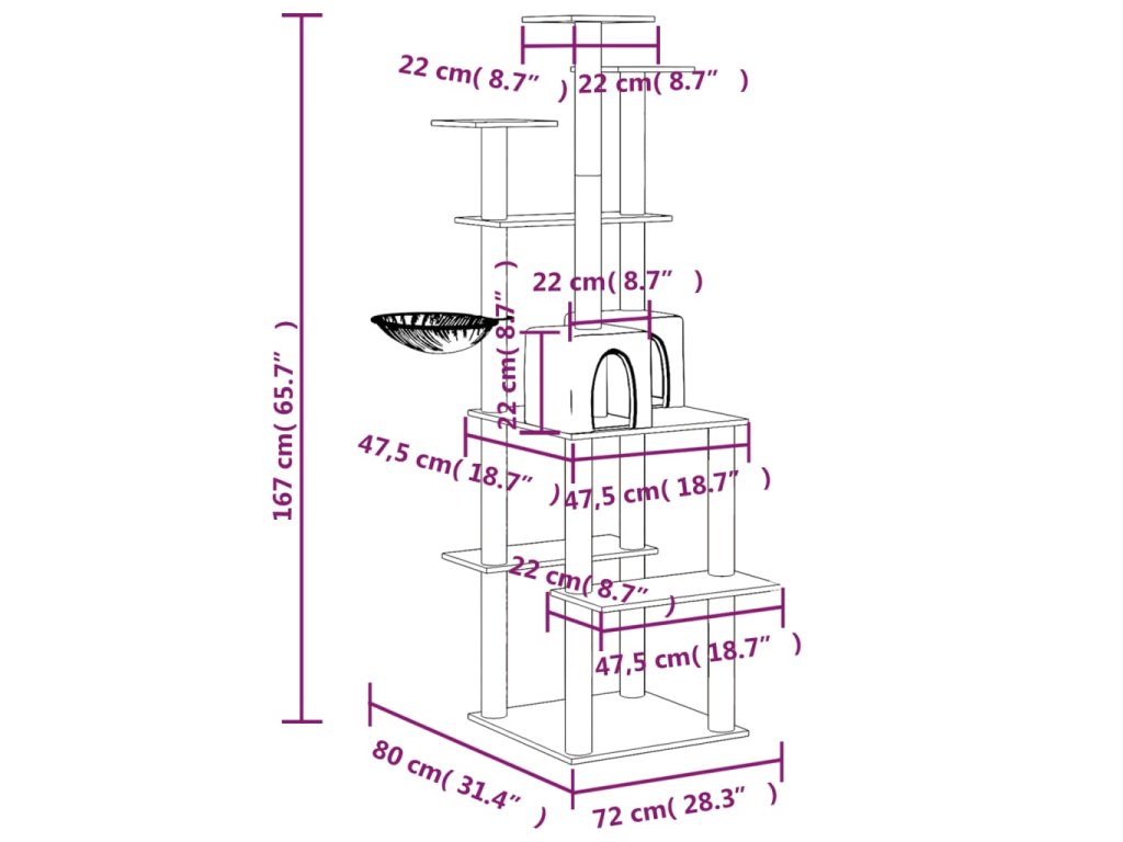 Vďaka tomuto mačaciemu stromom zažijú vaši domáci miláčikovia dokonalý luxus. Vaše mačky si na ňom budú môcť užívať škrabanie, šplhanie, vysedávanie, schovávanie a oddychovanie.