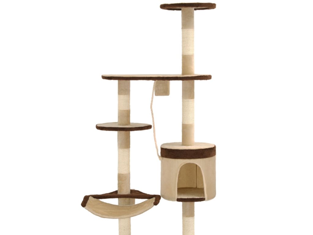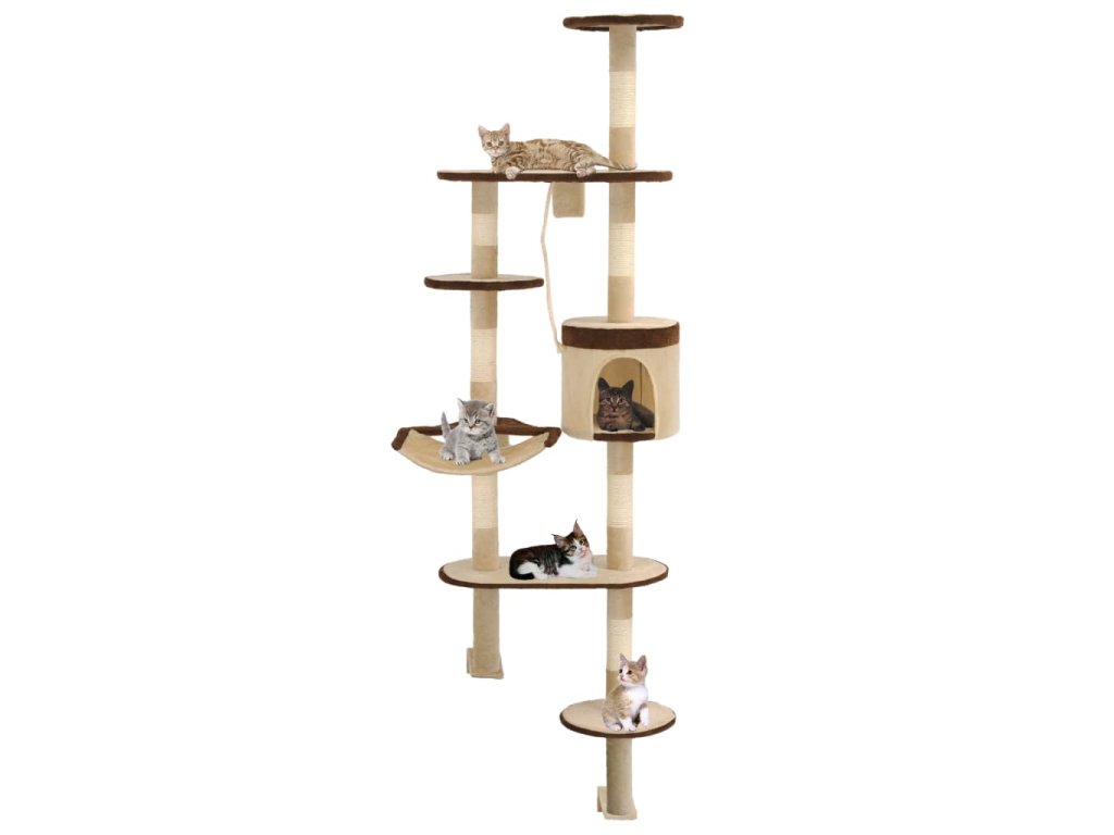Plyšové škrabacie tyče s kobercami sú obalené sisalovým lanom, čo je veľmi vhodné na brúsenie pazúrikov vášho mačacieho kamaráta. Mačka sa zabaví naháňaním a skákaním po tejto zábavnej hračke. Mačací strom je vybavený útulným domčekom a posteľou, aby si mohla mačka zdriemnuť alebo si oddýchnuť. Taktiež obsahuje vyhliadkové plošiny a priestory na relax, ktoré pomôžu zabaviť vášho malého priateľa.