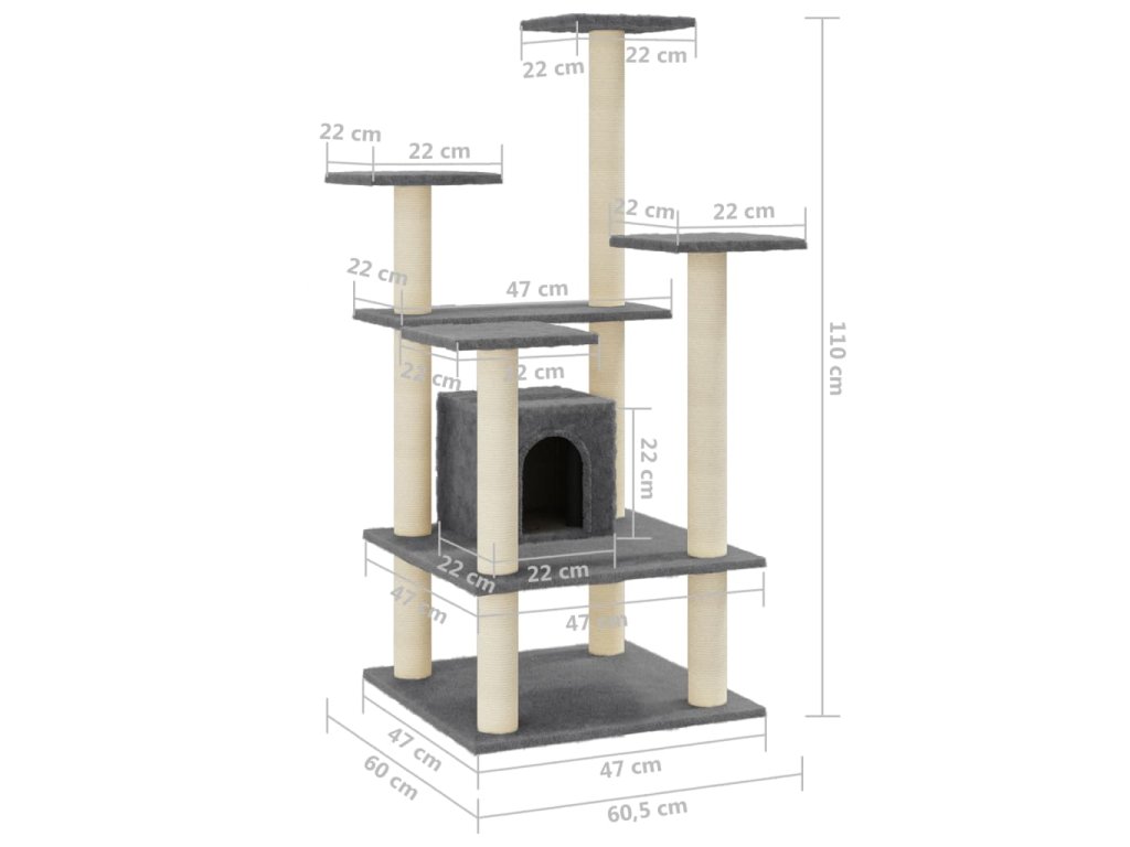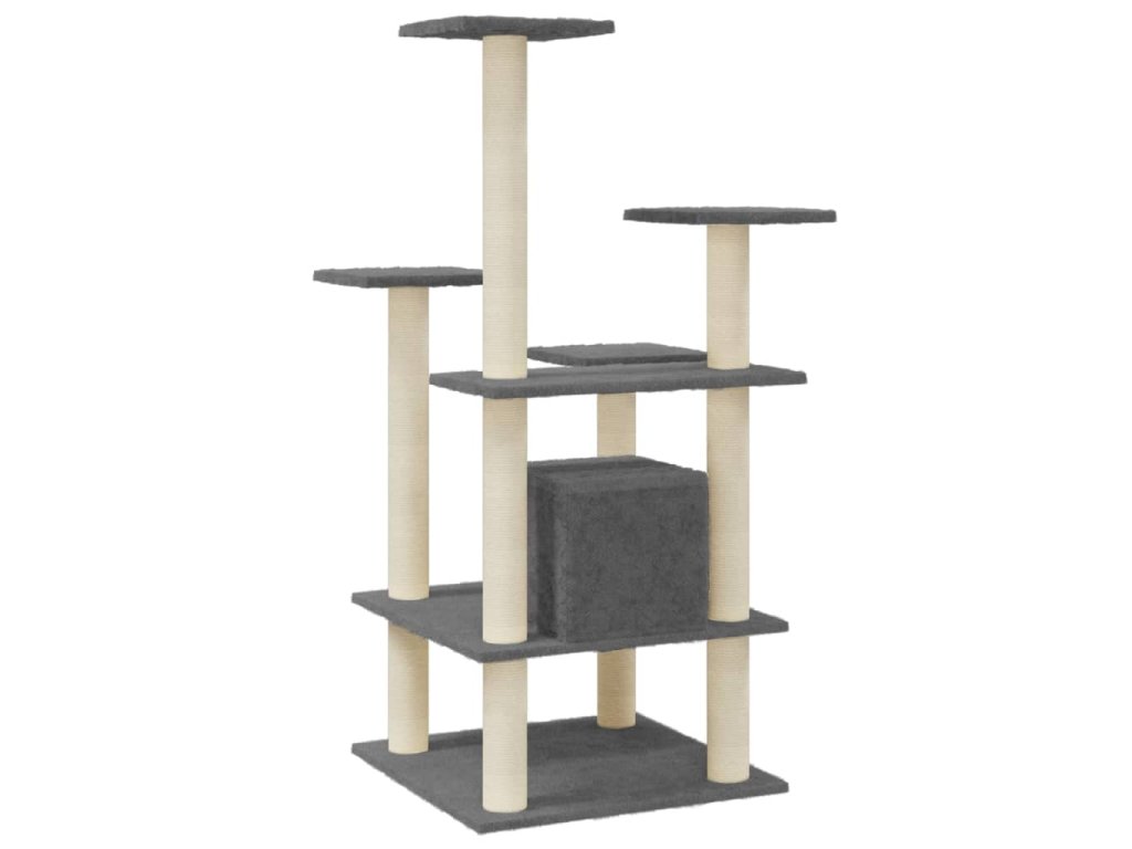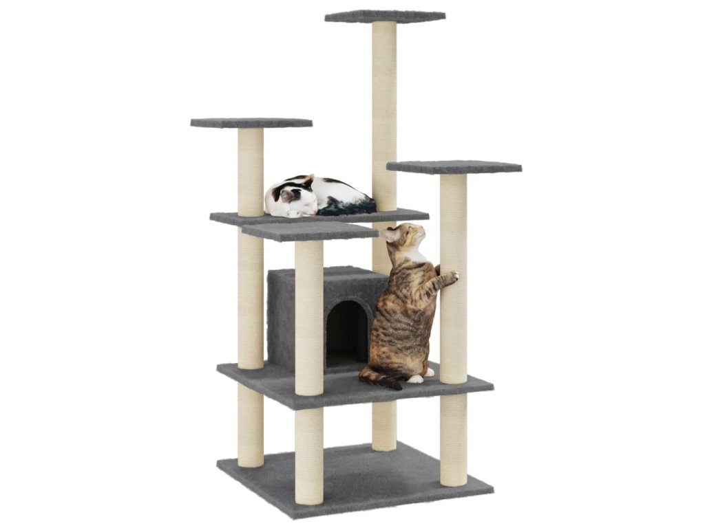 Vaši chlpatí priatelia si môžu ostriť pazúriky na škrabacích stĺpikoch obalených sisalovým lanom, ktoré im poskytnú zdravý spôsob ako si tento svoj inštinkt trénovať. Budú sa veselo naháňať a skákať hore dole po strome. Keď sa vašim malým kamarátom prestane chcieť hrať, zaiste si radi oddýchnu na plošinách v hornej časti, odkiaľ majú lepší výhľad. Alebo sa môžu schovať do útulného domčeka a pospať si či len tak odpočívať na pohodlnom plyšovom sedadle.
