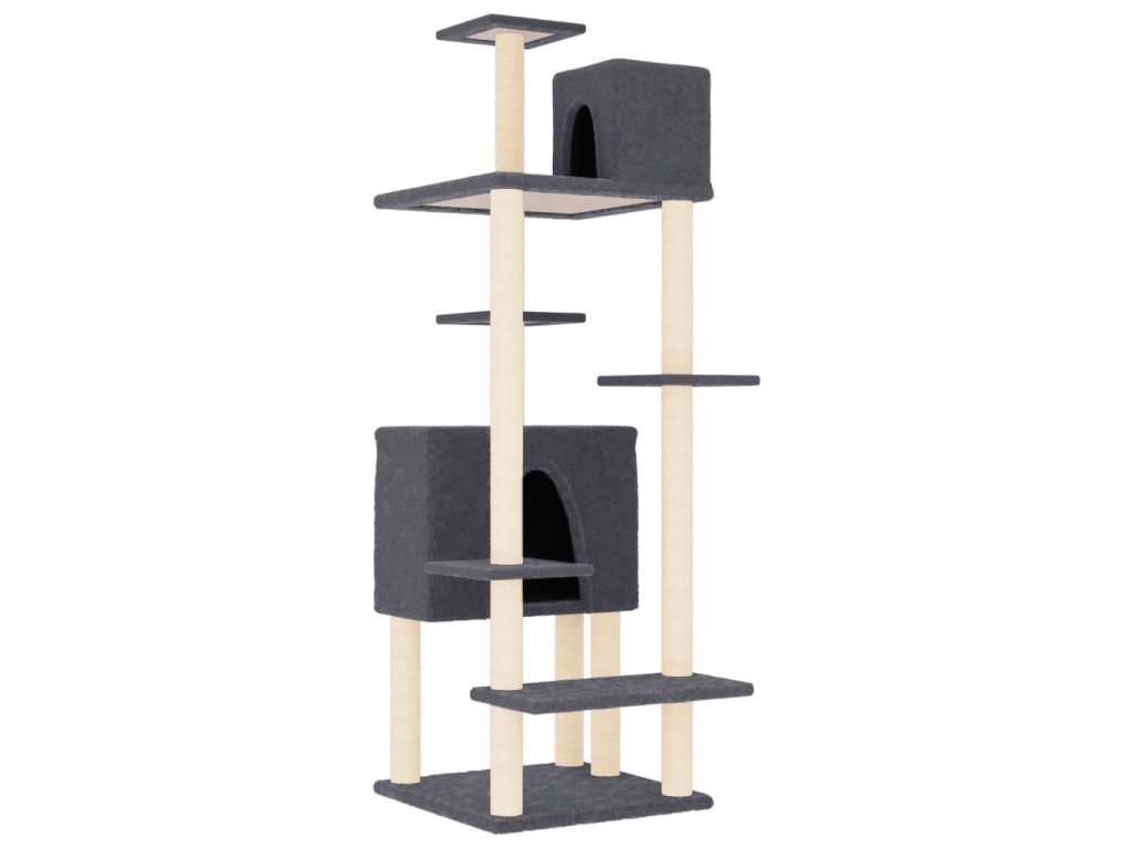 - Komplexná veža pre mačky: Viacúrovňový nábytok pre mačky je navrhnutý s 2 domčekmi a plošinami, ktoré vašim mačkám poskytujú dokonalé miesto, kde môžu liezť, sedieť, škrabať sa, schovávať sa a tiež relaxovať.