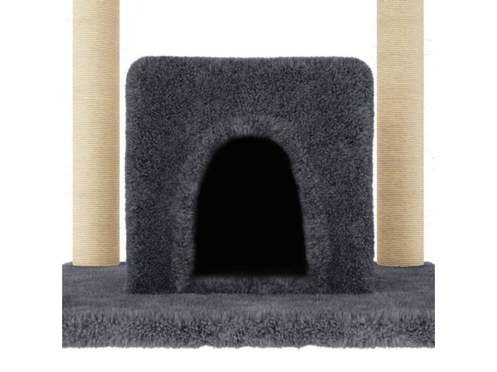 - Komplexná veža pre mačky: Viacúrovňový nábytok pre mačky je navrhnutý s domčekom, košom a plošinami, ktoré vašim mačkám poskytujú dokonalé miesto, kde môžu liezť, sedieť, škrabať sa, schovávať sa a tiež relaxovať.