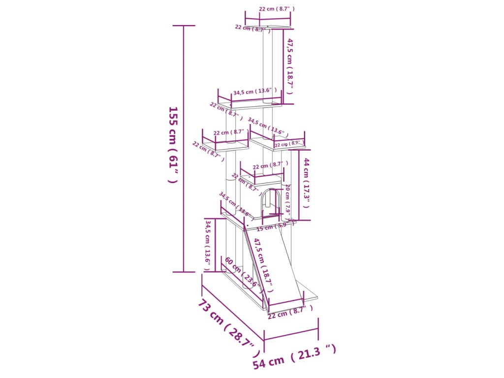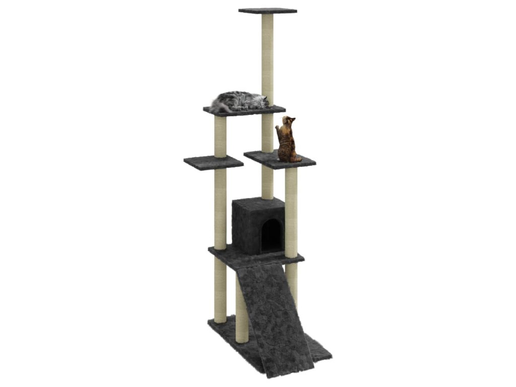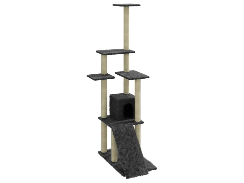 Vaši chlpatí priatelia si môžu ostriť pazúriky na škrabacích stĺpikoch obalených sisalovým lanom, ktoré im poskytnú zdravý spôsob ako si tento svoj inštinkt trénovať. Budú sa veselo naháňať a skákať hore dole po strome. Keď sa vašim malým kamarátom prestane chcieť hrať, zaiste si radi oddýchnu na plošinách v hornej časti, odkiaľ majú lepší výhľad. Alebo sa môžu schovať do útulného domčeka a pospať si či len tak odpočívať na pohodlnom plyšovom sedadle. V spodnej časti sa nachádza rampa, po ktorej môžu liezť.