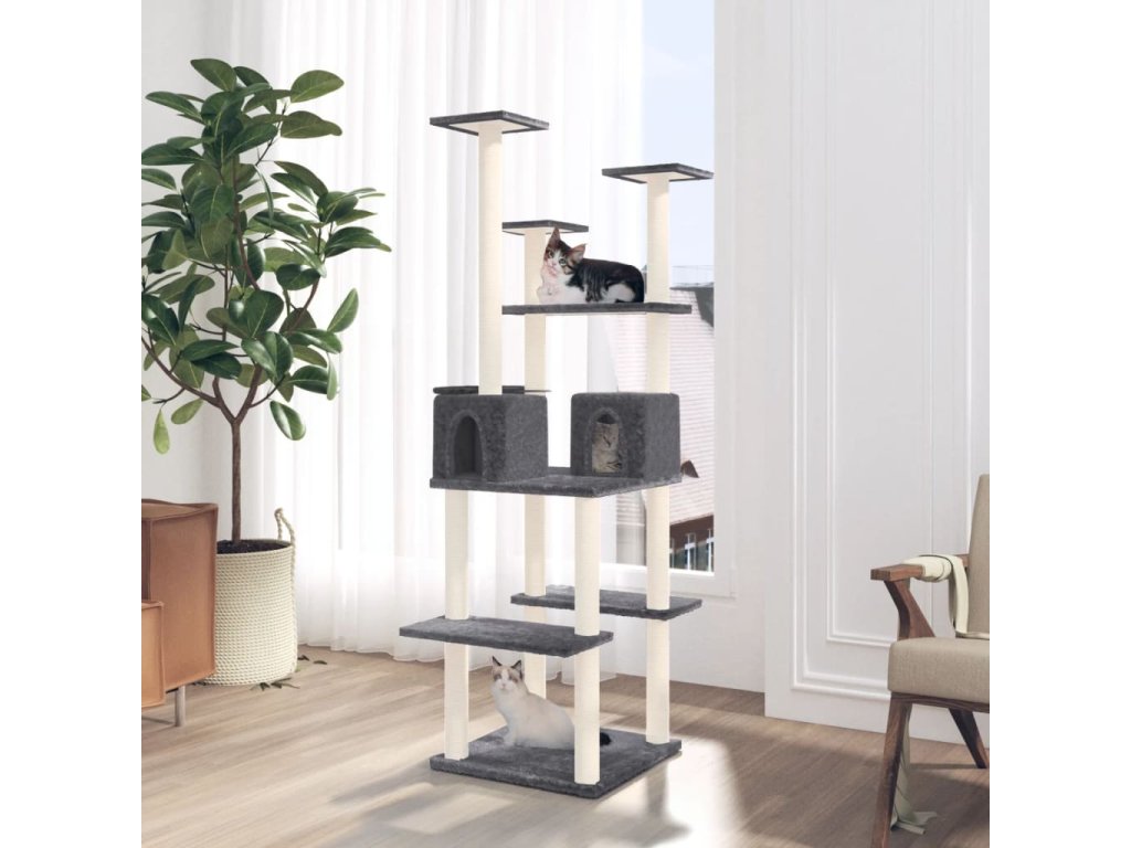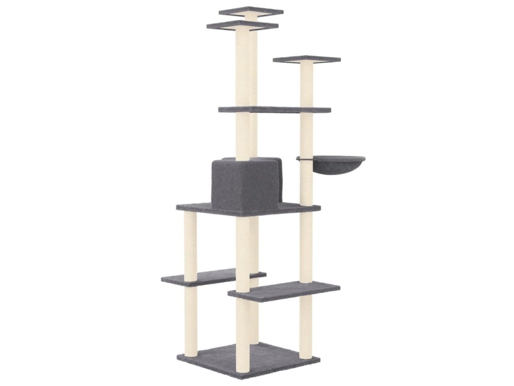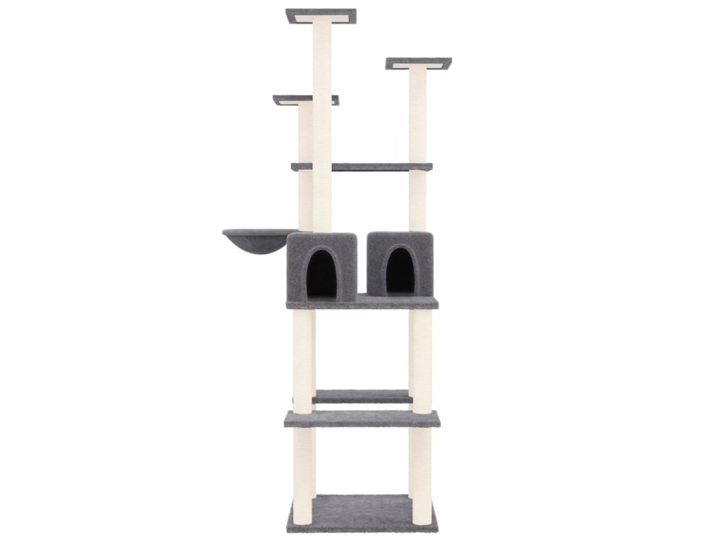 - Mačacie univerzálne škrabadlo: Viacúrovňová veža na škrabanie pre mačky poskytne vašej mačke zábavu a skladné miesto na hranie či cvičenie. Bude aj útulným domčekom na výdatný spánok. Obsahuje 2 domčeky, hojdaciu sieť a plošiny.