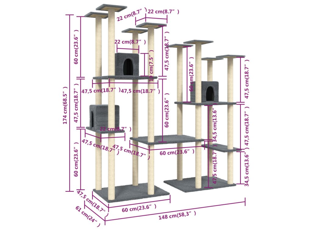 Tento strom pre mačky je dokonalým útočiskom pre vaše mačky, kde sa môžu škriabať, šplhať, hniezdiť, schovávať a odpočívať. Dáva vašim mačkám možnosť natiahnuť sa a precvičiť, najmä v chladných zimných mesiacoch, keď sú zavreté doma.