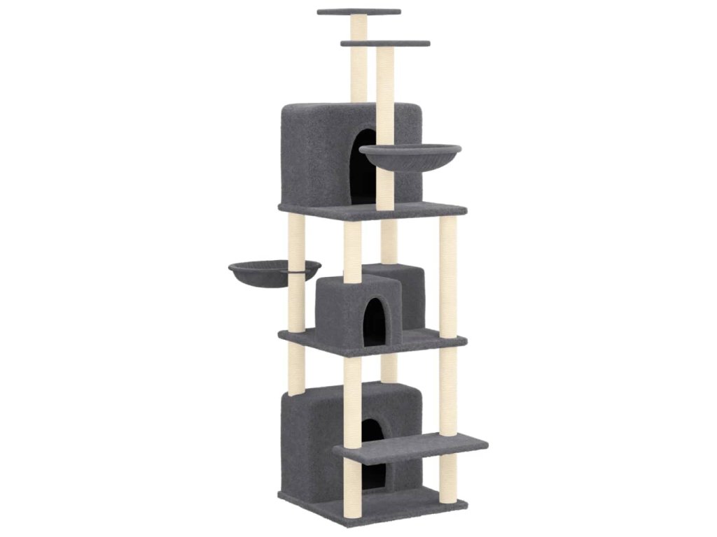 - Komplexná veža pre mačky: Viacúrovňový nábytok pre mačky je navrhnutý so 4 domčekmi, 2 ležadlami a plošinami, ktoré vašim mačkám poskytujú dokonalé miesto, kde môžu liezť, sedieť, škrabať sa, schovávať sa a tiež relaxovať.