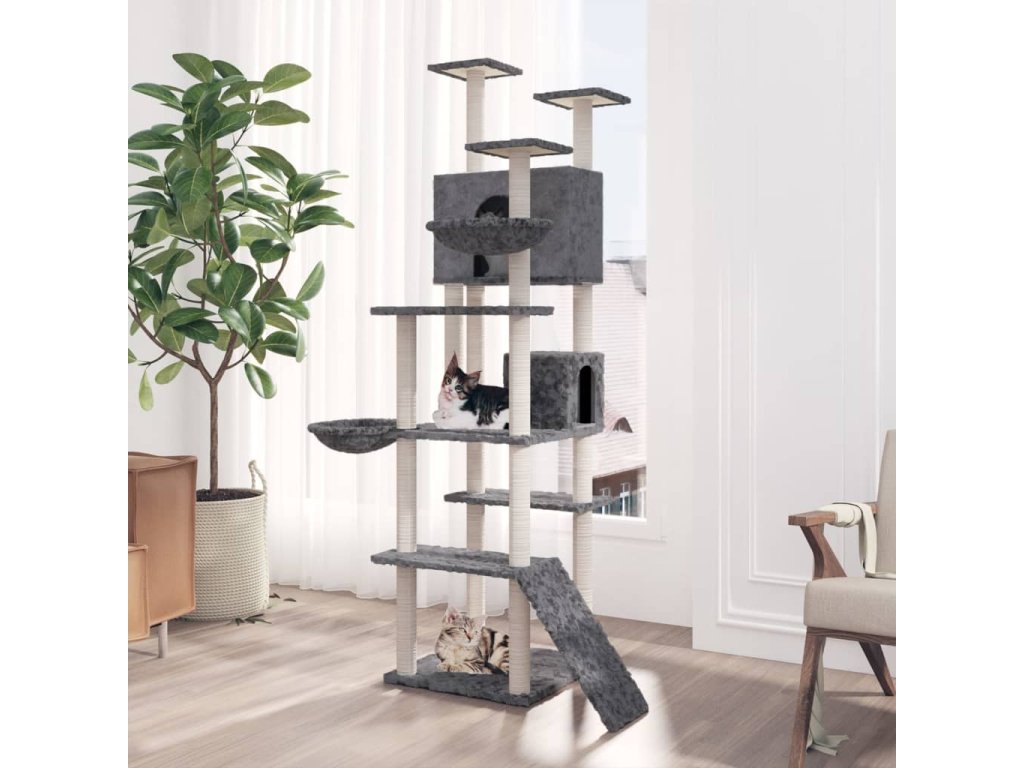 - Mačacie univerzálne škrabadlo: Viacúrovňová veža na škrabanie pre mačky poskytne vašej mačke zábavu a skladné miesto na hranie či cvičenie. Bude aj útulným domčekom na výdatný spánok. Obsahuje rebrík, 2 domčeky, 2 koše a plošiny.