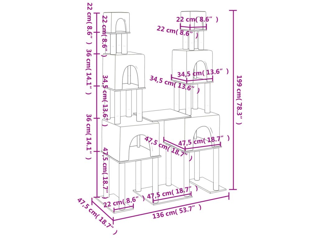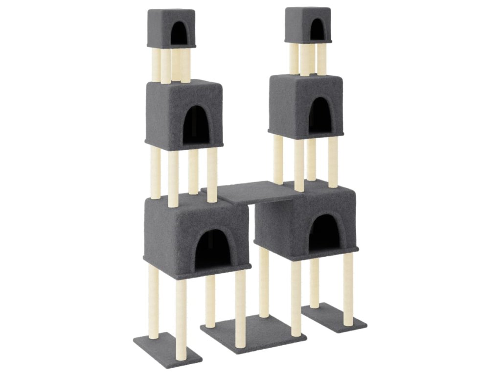 - Komplexná veža pre mačky: Viacúrovňový nábytok pre mačky je navrhnutý s plošinou a 6 domčekmi, ktoré vašim mačkám poskytujú dokonalé miesto, kde môžu liezť, sedieť, škrabať sa, schovávať sa a tiež relaxovať.