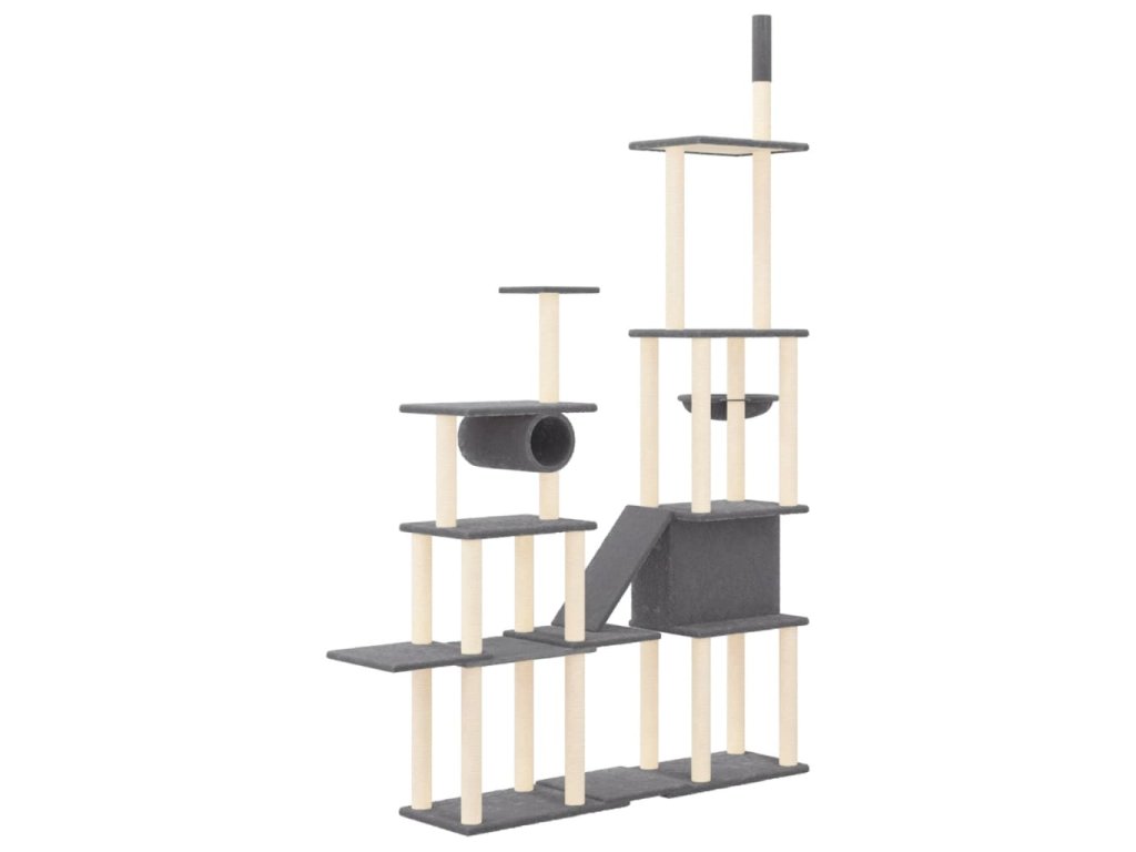 - Komplexná veža pre mačky: Viacúrovňový nábytok pre mačky obsahuje 1 tunel, 1 hojdaciu sieť, 1 domček, 1 rebrík a plošiny, ktoré vašim mačkám poskytujú dokonalé miesto, kde môžu liezť, sedieť, škrabať, schovať sa či relaxovať.