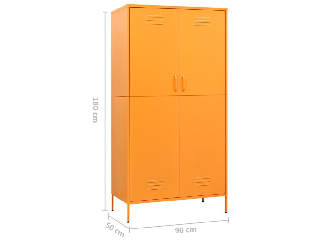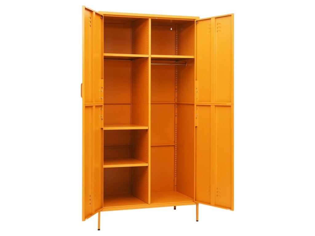 Táto skriňa na oblečenie je vyrobená z ocele, vďaka čomu je odolná a ľahko sa čistí. Táto skriňa má 4 nastaviteľné police a veľkú priehradku s vešiakovou tyčou, ktoré vám ponúkajú dostatok úložného priestoru nielen pre vaše dlhšie oblečenie, ale aj pre poskladané oblečenie alebo doplnky, ako sú svetre, džínsy, čiapky, kabelky atď.