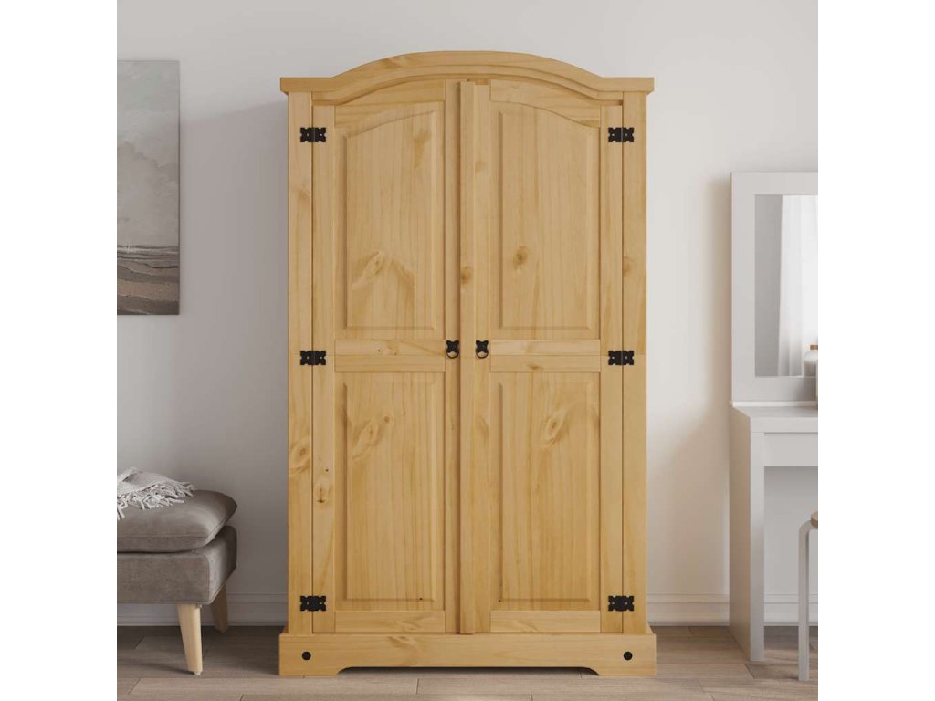 Kvalitná drevená skriňa je v mexickom štýle 'Corona'. Voskované borovicové drevo s čiernymi kovovými detailmi vyžaruje mexický šarm, vďaka ktorému bude táto skriňa skvelou súčasťou Vašej spálne či šatníka.