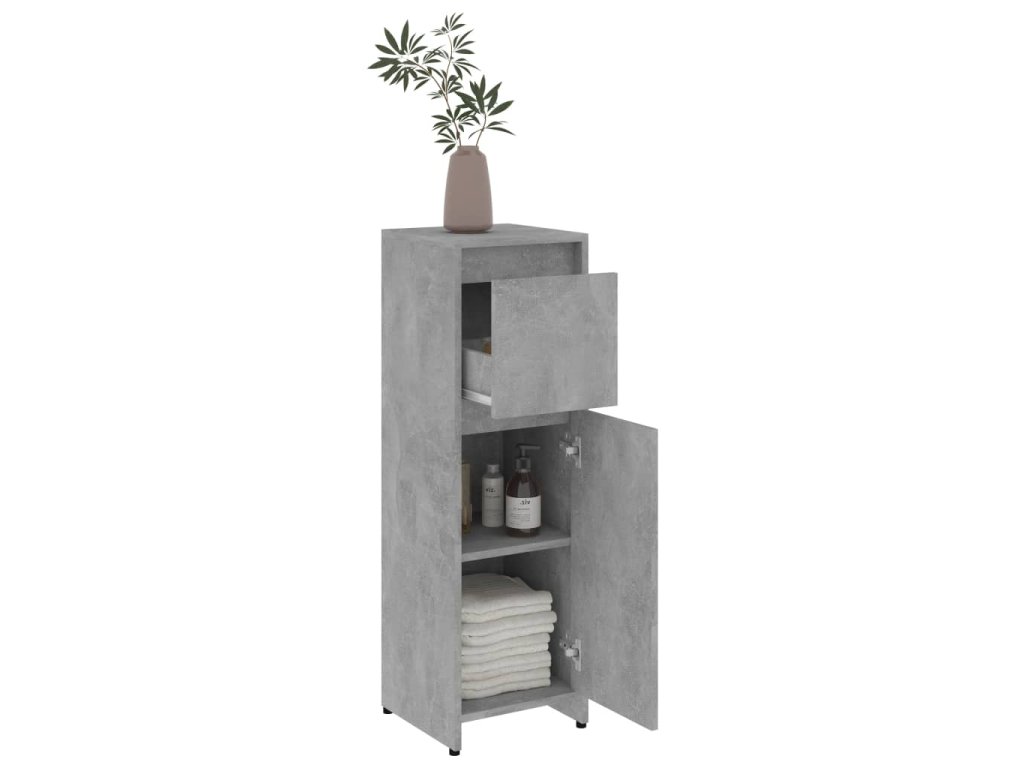 Elegantná skrinka je vyrobená z kompozitného dreva, vďaka čomu je robustná a stabilná. Skrinka do práčovne má 2 priečinky, 1 zásuvku a 1 dvierka, ktoré ponúkajú niekoľko možností skladovania a dodatočný úložný priestor na odkladanie rôznych predmetov v kúpeľni. Skrinka sa dá ľahko očistiť navlhčenou handričkou.