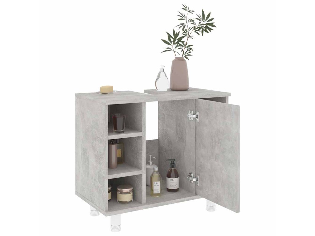 Elegantná skrinka je vyrobená z kompozitného dreva, vďaka čomu je robustná a stabilná. Úložná skrinka má 7 priečinkov a 1 dvierka, ktoré ponúkajú niekoľko možností skladovania a dodatočný úložný priestor na odkladanie rôznych predmetov v kúpeľni. Na dvierkach sa nachádza úchytka, pomocou ktorej ich jednoducho otvoríte aj zatvoríte. Skrinka sa dá ľahko očistiť navlhčenou handričkou.