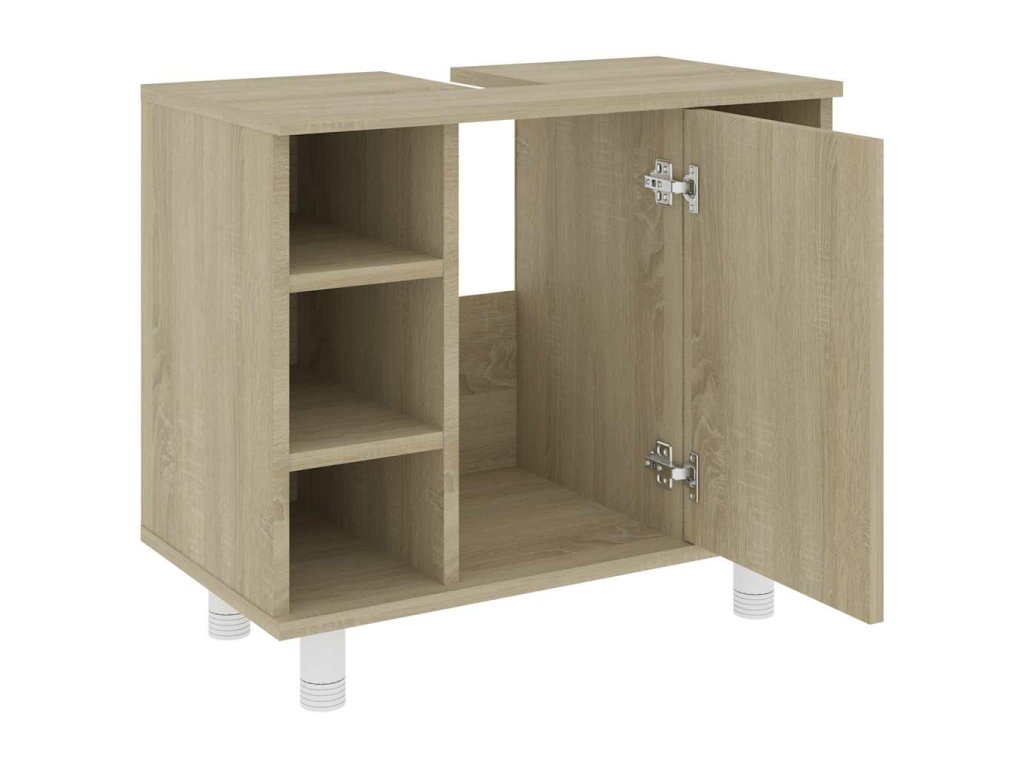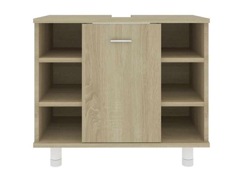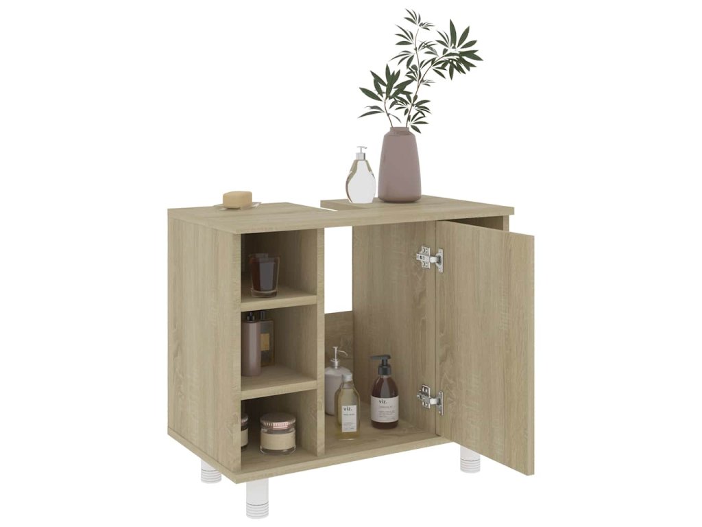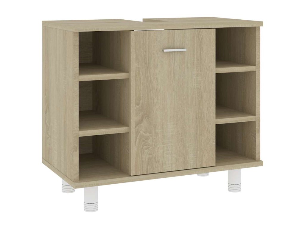 Elegantná skrinka je vyrobená z kompozitného dreva, vďaka čomu je robustná a stabilná. Úložná skrinka má 7 priečinkov a 1 dvierka, ktoré ponúkajú niekoľko možností skladovania a dodatočný úložný priestor na odkladanie rôznych predmetov v kúpeľni. Na dvierkach sa nachádza úchytka, pomocou ktorej ich jednoducho otvoríte aj zatvoríte. Skrinka sa dá ľahko očistiť navlhčenou handričkou.