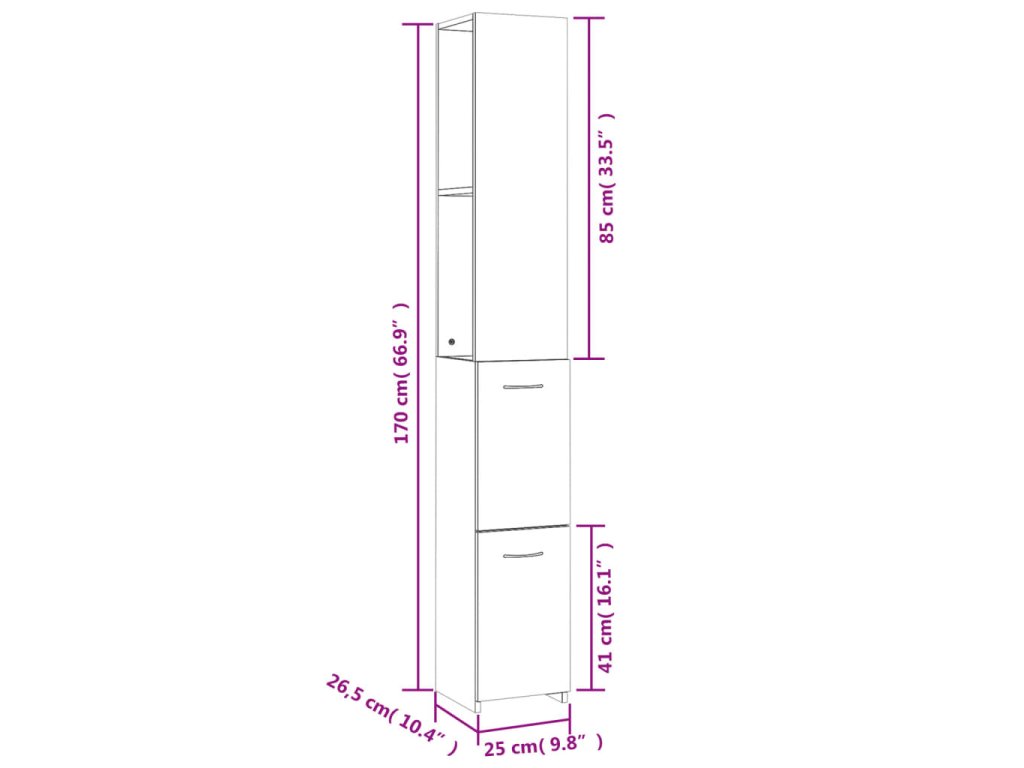 - Celkové rozmery: 25 x 26,5 x 170 cm (Š x H x V)