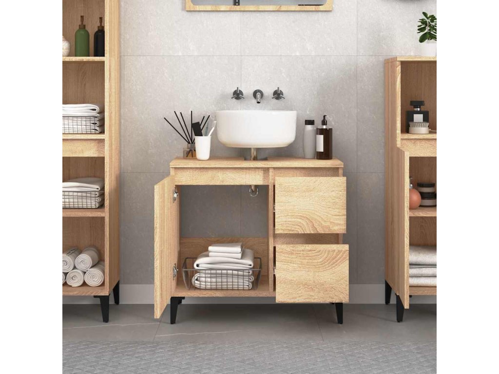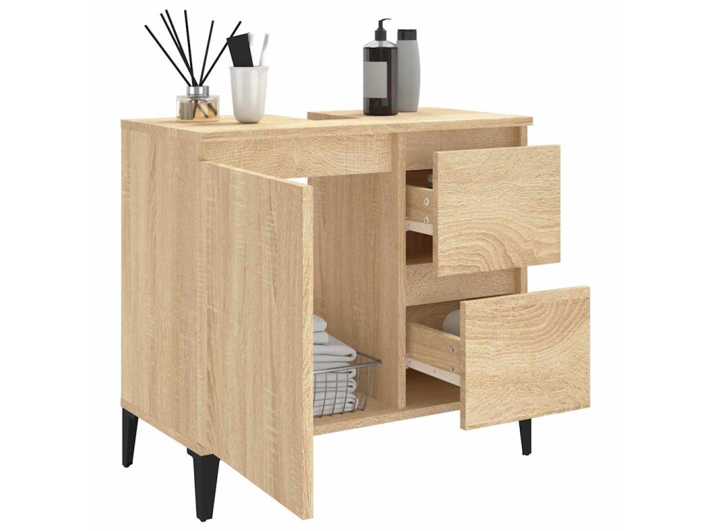 - Dostatok úložného priestoru: Kúpeľňový nábytok má 2 zásuvky a 1 priehradku s dvierkami, ktoré ponúkajú rôzne úložné možnosti a extra priestor na uloženie predmetov vo vašej kúpeľni.