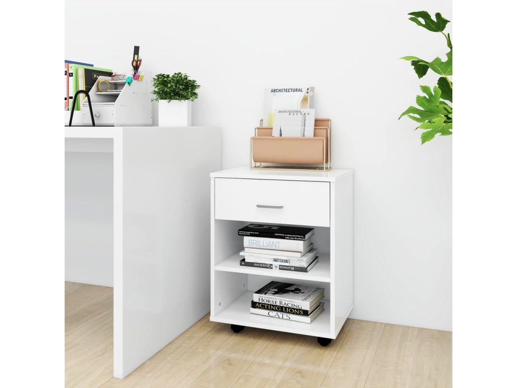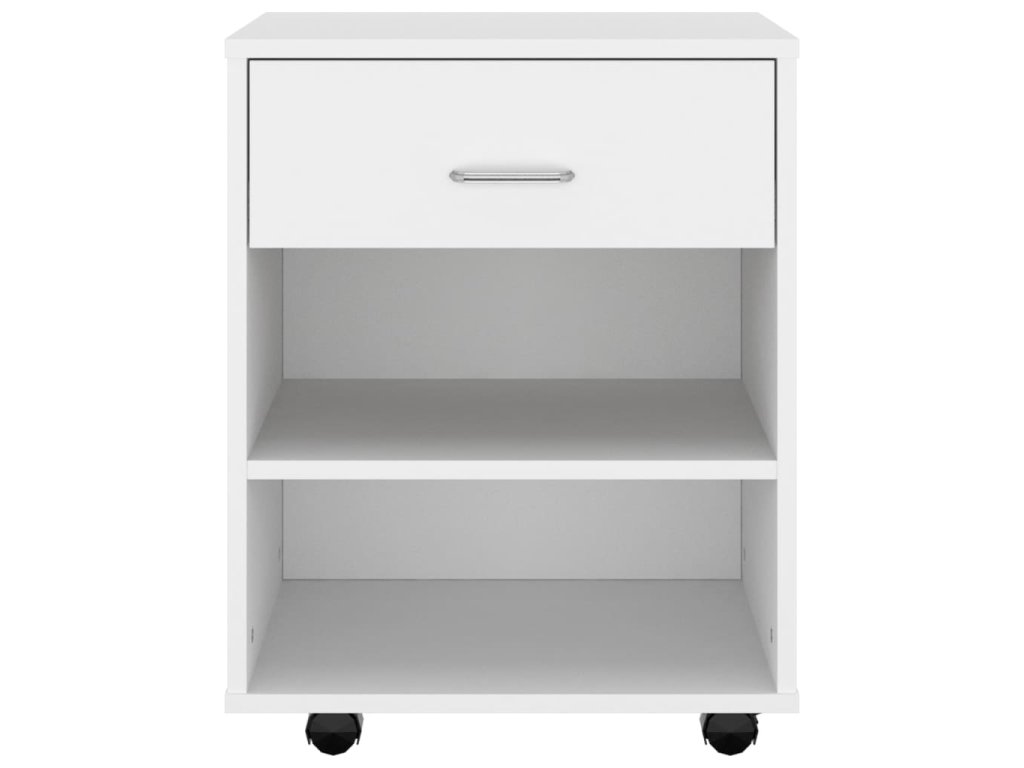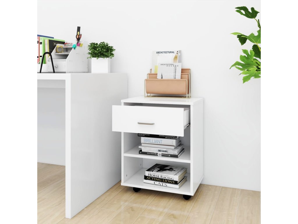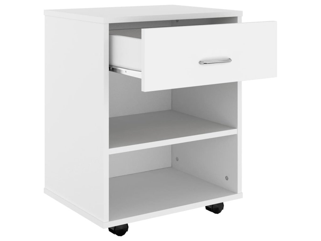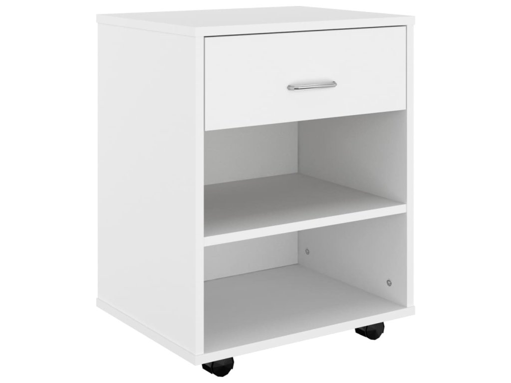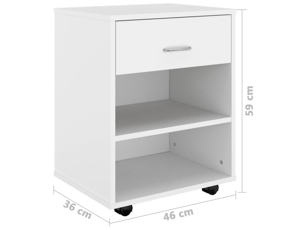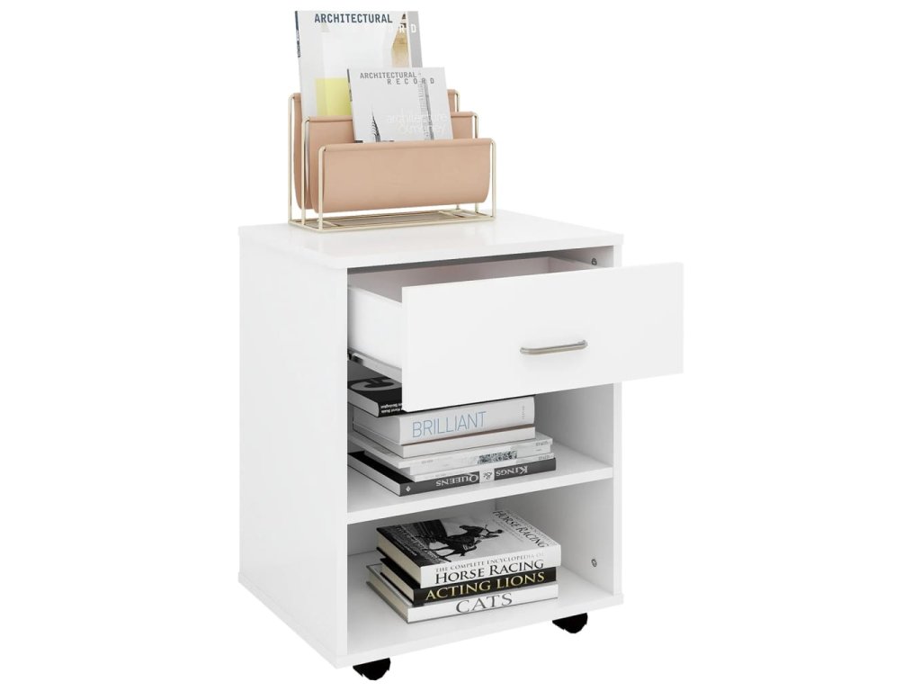 Je vyrobená z kvalitného kompozitného dreva, vďaka čomu je trvácna a ľahko sa čistí. Na obdĺžnikovú vrchnú dosku si môžete položiť tlačiareň a kancelársky papier a ďalšie potreby si môžete uložiť na poličky alebo vedľa písacieho stola, aby ste ušetrili miesto. Vďaka kolieskam, z ktorých dve sú uzamykateľné, sa skrinka dá pohodlne presúvať a je naozaj všestranná.