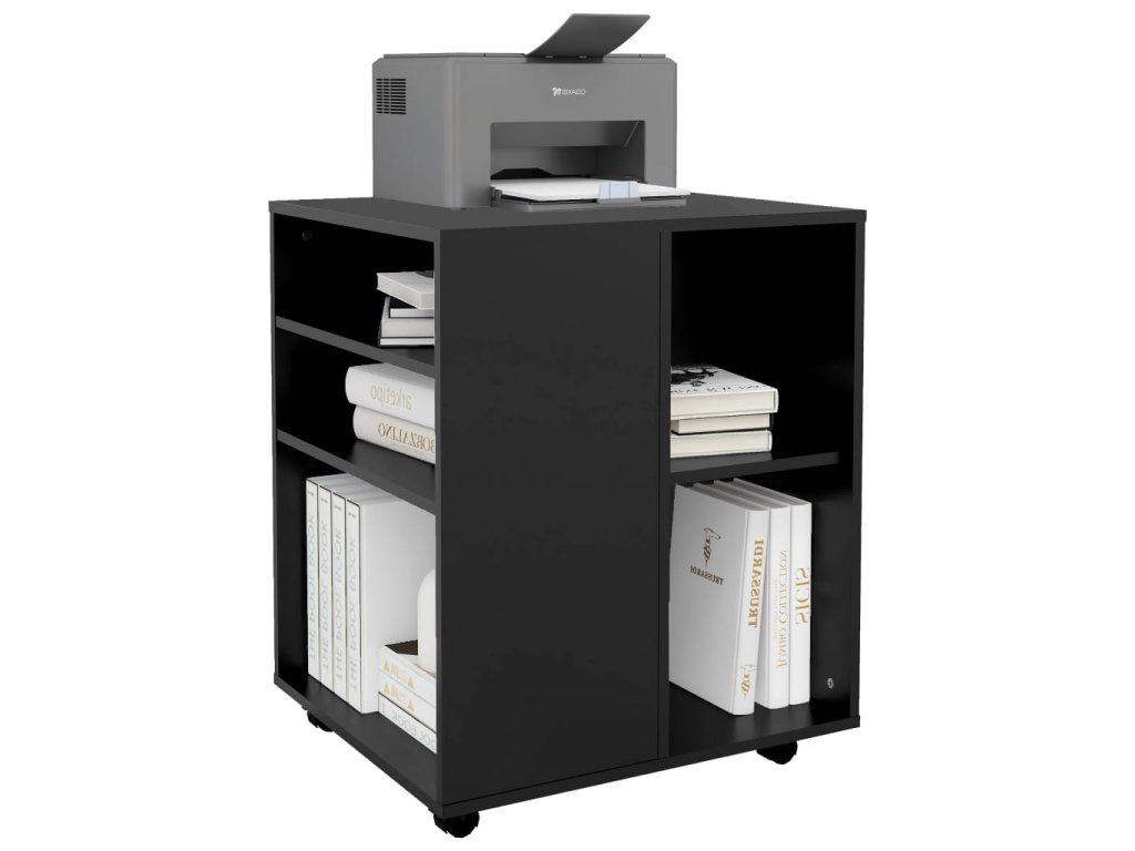 Je vyrobená z kvalitného kompozitného dreva, vďaka čomu je trvácna a ľahko sa čistí. Na obdĺžnikovú vrchnú dosku si môžete položiť tlačiareň a kancelársky papier a ďalšie potreby si môžete uložiť na poličky alebo vedľa písacieho stola, aby ste ušetrili miesto. Vďaka kolieskam, z ktorých dve sú uzamykateľné, sa skrinka dá pohodlne presúvať a je naozaj všestranná.