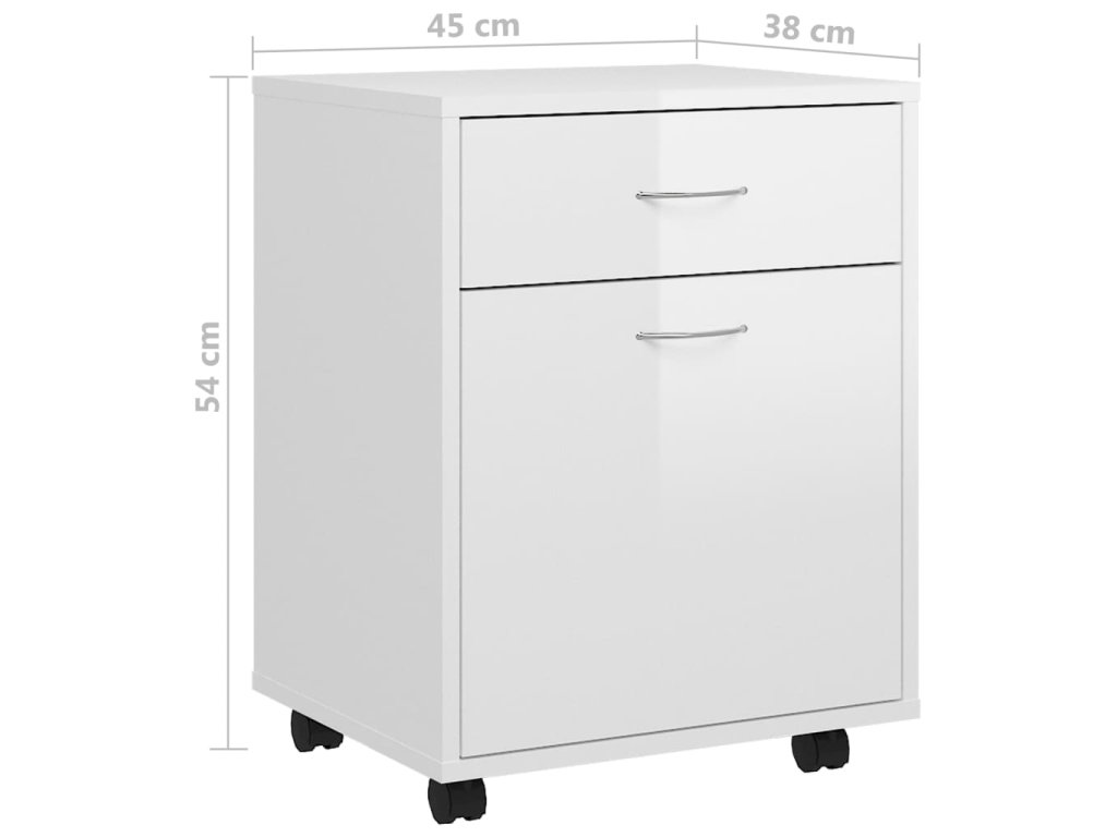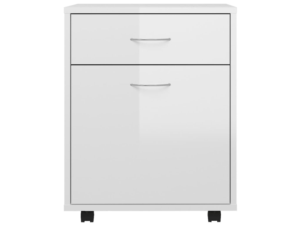 Skrinka má 1 dvierka a 1 zásuvku, kam si môžete odložiť dôverné dokumenty a ďalšie drobnosti. Je vyrobená z kvalitného kompozitného dreva, vďaka čomu je trvácna a ľahko sa čistí. Vďaka kolieskam, z ktorých dve sú uzamykateľné, sa skrinka dá pohodlne presúvať a je naozaj všestranná.