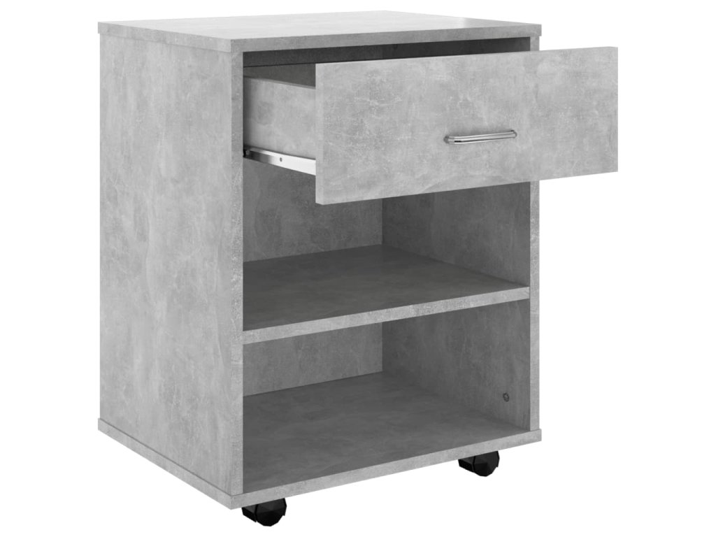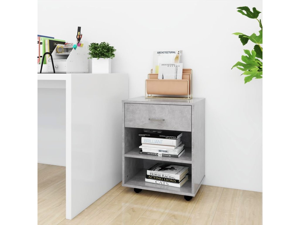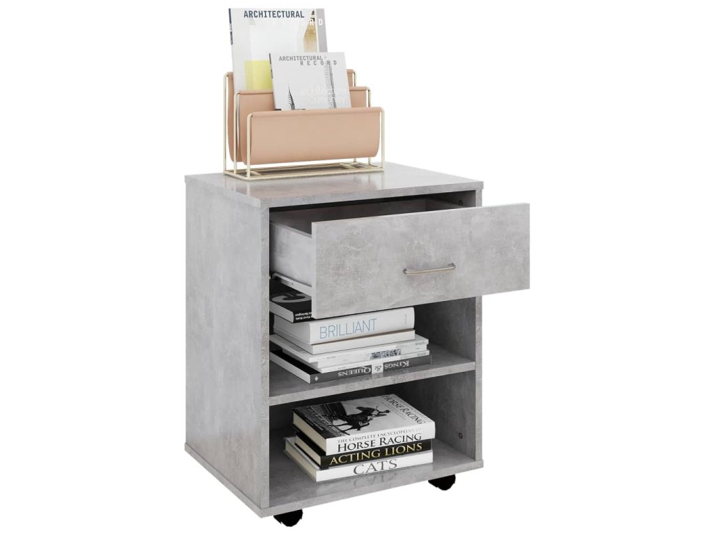 Je vyrobená z kvalitného kompozitného dreva, vďaka čomu je trvácna a ľahko sa čistí. Na obdĺžnikovú vrchnú dosku si môžete položiť tlačiareň a kancelársky papier a ďalšie potreby si môžete uložiť na poličky alebo vedľa písacieho stola, aby ste ušetrili miesto. Vďaka kolieskam, z ktorých dve sú uzamykateľné, sa skrinka dá pohodlne presúvať a je naozaj všestranná.