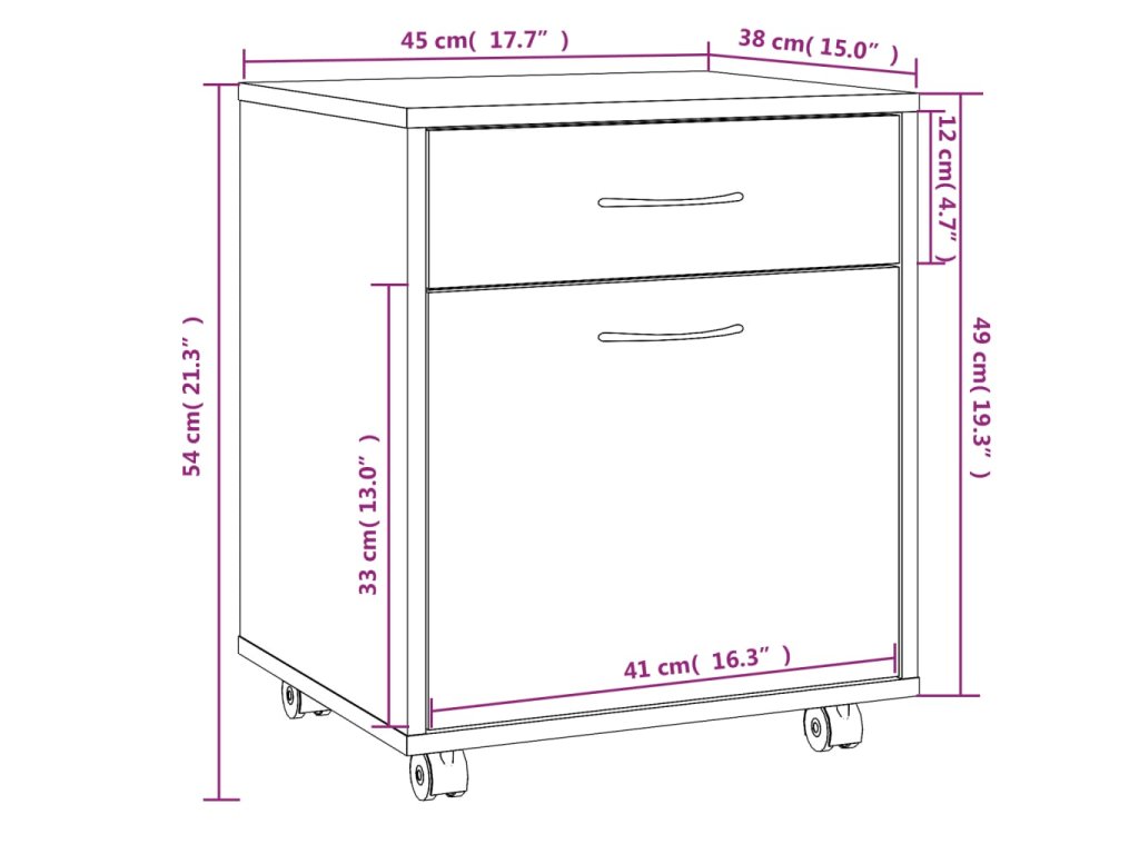 - Kolieskové prevedenie: Vďaka kolieskam, z ktorých dve sú uzamykateľné, je odkladacia skrinka obzvlášť mobilná a univerzálna.