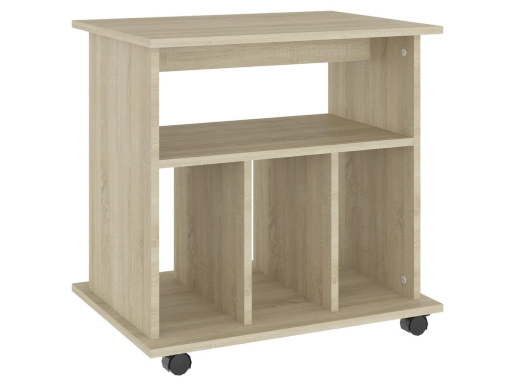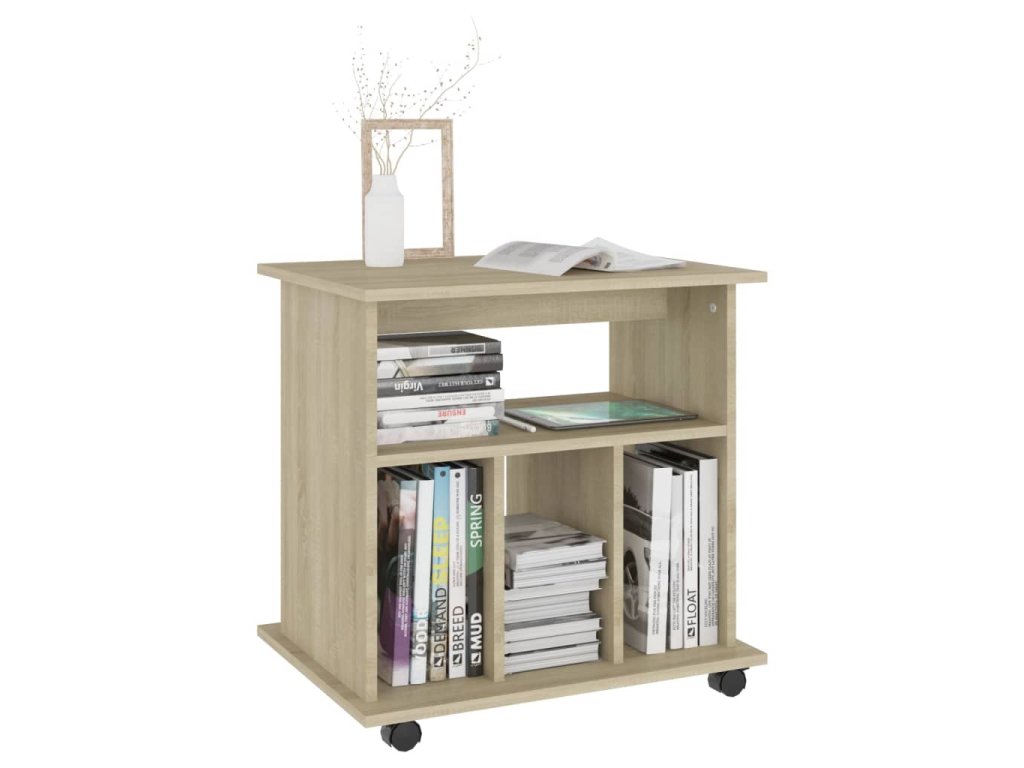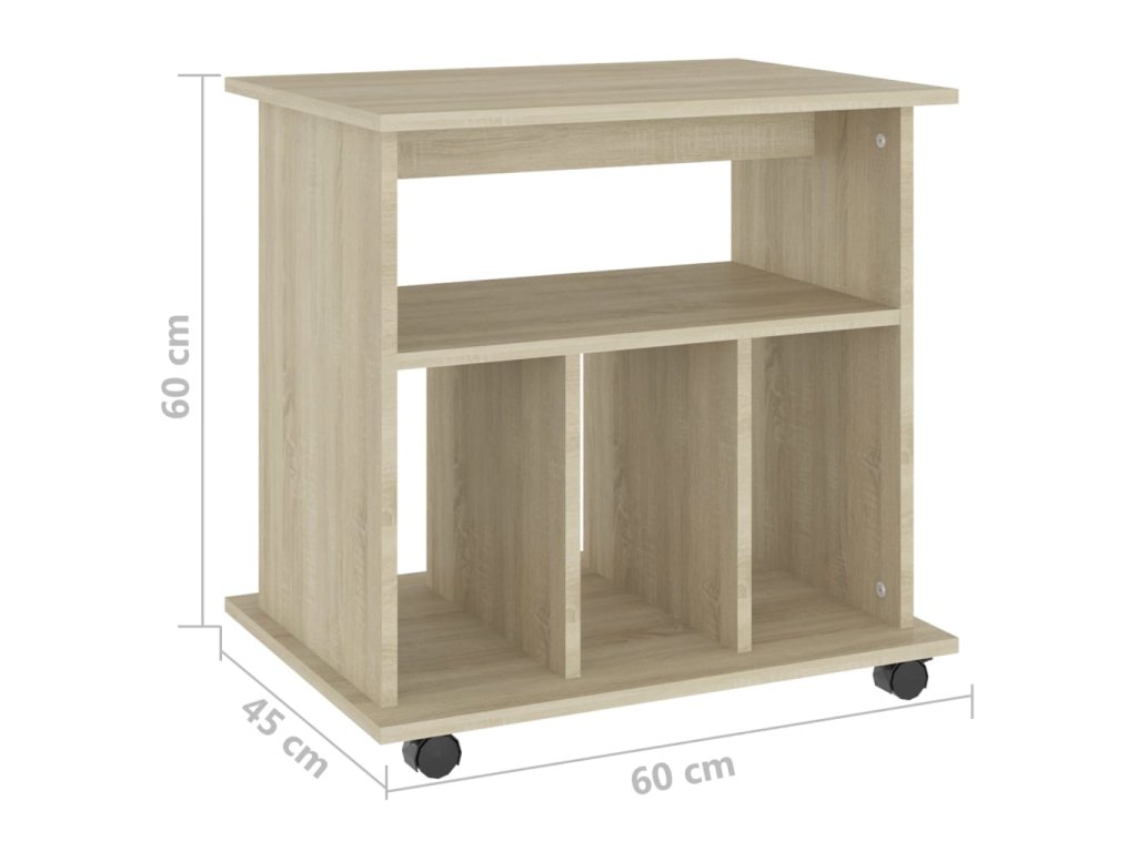 Je vyrobená z kvalitného kompozitného dreva, vďaka čomu je trvácna a ľahko sa čistí. Na obdĺžnikovú vrchnú dosku si môžete položiť tlačiareň a kancelársky papier a ďalšie potreby si môžete uložiť na poličky alebo vedľa písacieho stola, aby ste ušetrili miesto. Vďaka kolieskam, z ktorých dve sú uzamykateľné, sa skrinka dá pohodlne presúvať a je naozaj všestranná.