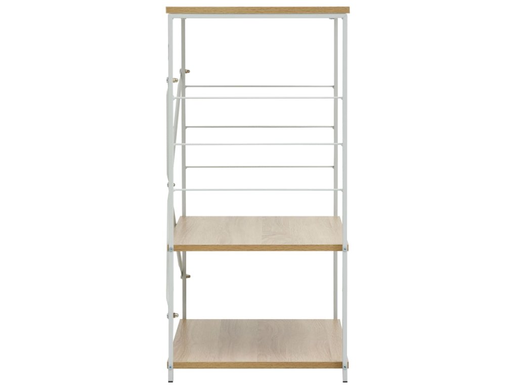 Kuchynský regál je vyrobený z kompozitného dreva a dá sa ľahko očistiť navlhčenou handričkou. Vďaka oceľovej konštrukcii je regál antikorózny a robustný. Regál má 3 úrovne, takže poskytuje množstvo priestoru na odkladanie rôznych predmetov. Na bočnej strane skrinky sa nachádzajú aj háčiky na zavesenie hrncov, panvíc, kuchynského náčinia, chňapiek a iných potrieb. Regál si môžete umiestniť aj do obývačky či kancelárie, kde poslúži na vystavenie zberateľských predmetov, rámikov s fotkami a podobne.