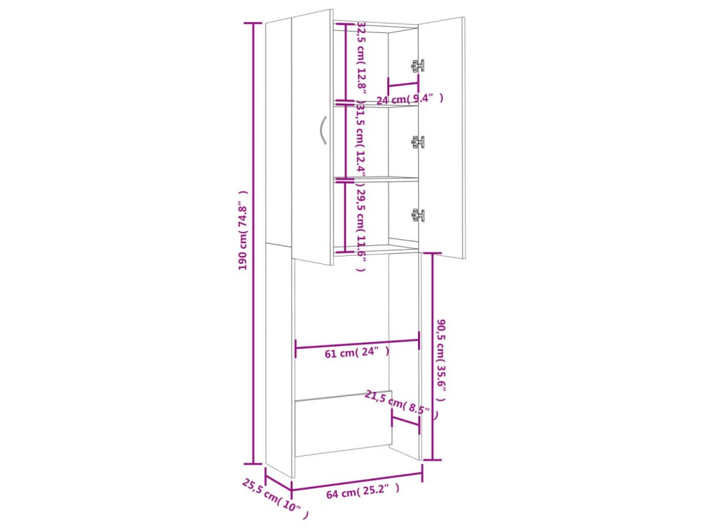 - Rozmery: 64 x 25,5 x 190 cm (Š x H x V)