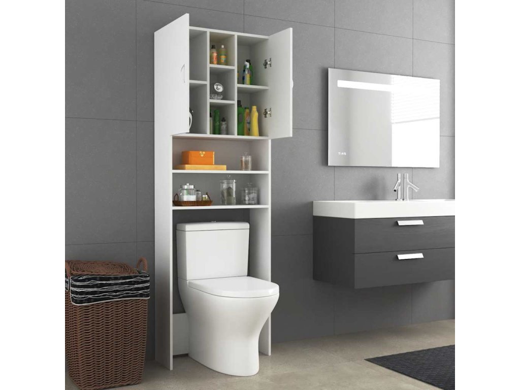 Skrinka do kúpeľne je pevná a odolná. Jej 2 dvierka a 9 priečinkov ponúkajú dostatočný úložný priestor na usporiadanie bielizne, čistiacich prostriedkov, toaletných potrieb a iných predmetov, ktoré chcete mať na dosah ruky. Táto skrinka sa ľahko čistí vlhkou handričkou.